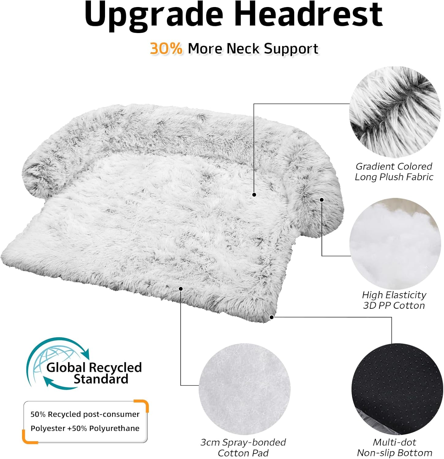 Calming Dog Bed Fluffy Plush Dog Mat for Furniture Protector with Removable Washable Cover for Large Medium Small Dogs and Cats (Large, Light Grey)