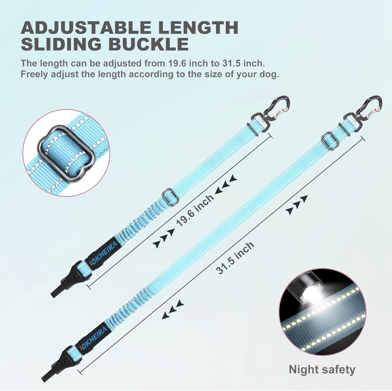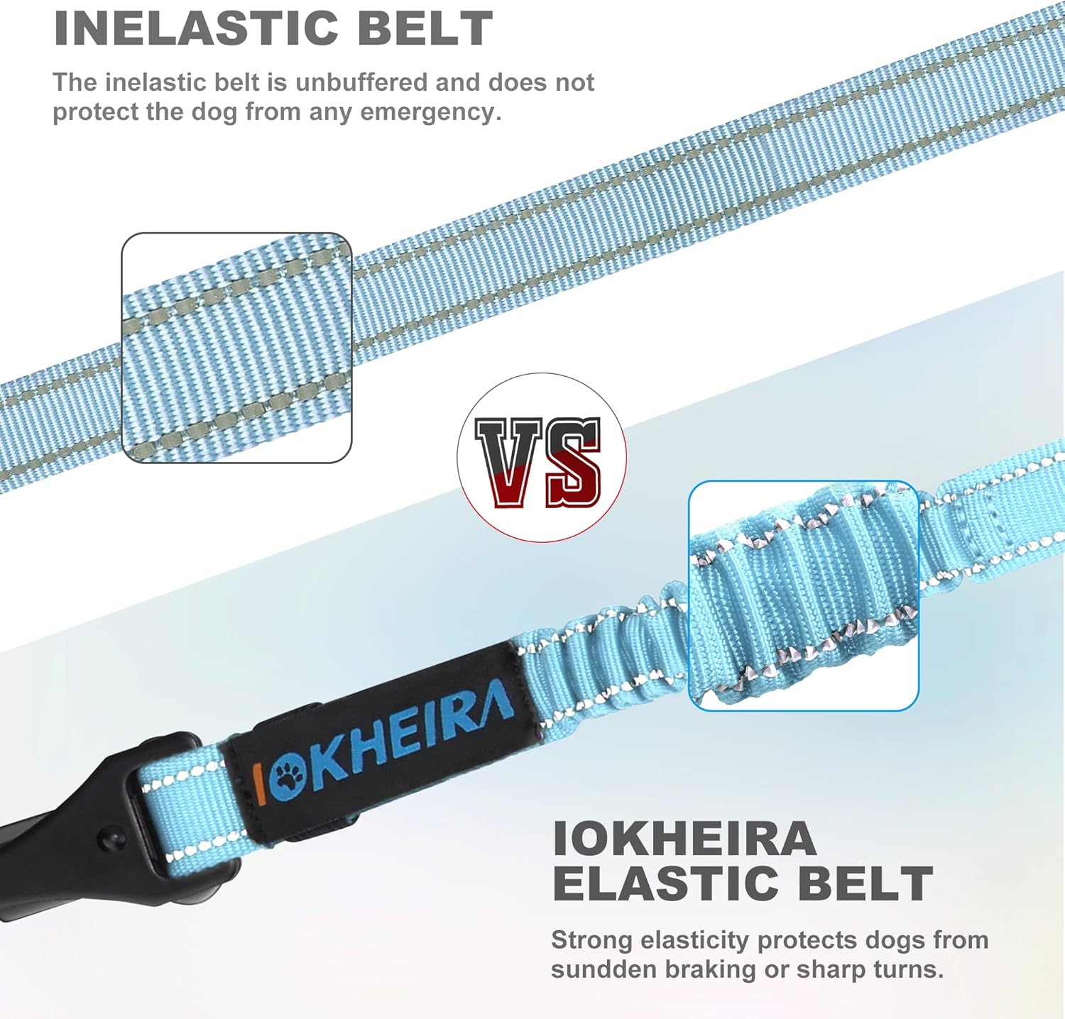 IOKHEIRA Dog Seatbelt, Adjustable, Reflective, Bungee Buffer, Large/Medium/Small, 900lbs, for Dogs