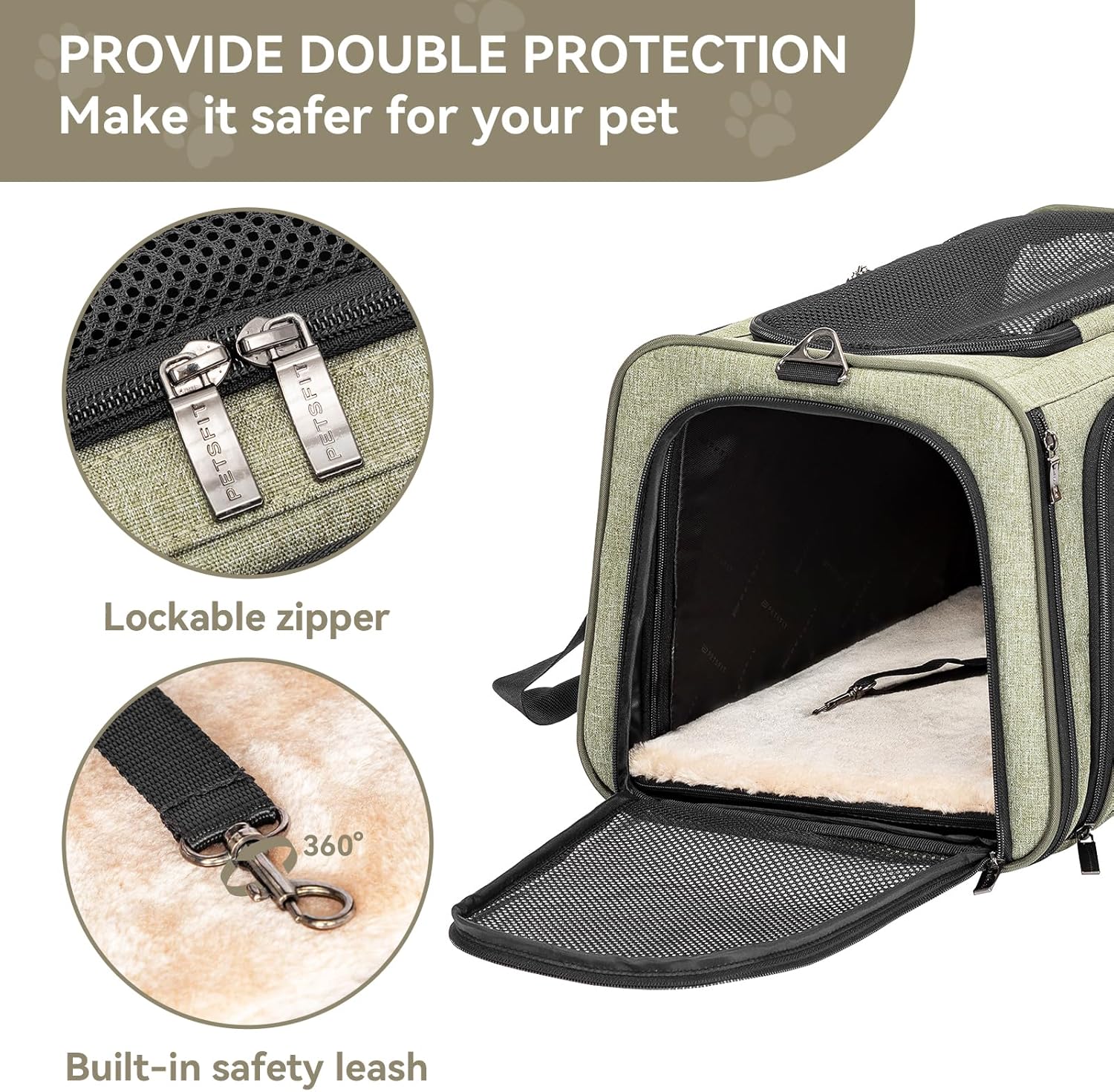 Petsfit Expandable Rabbit Carrier Bunny Carriers, 16 Inch Airline Approved Pet Carrier with 2 Extensions, Soft Washable Cushion, Self-Locking Zipper Head, Built-in Safety Rope, Fit for Travel