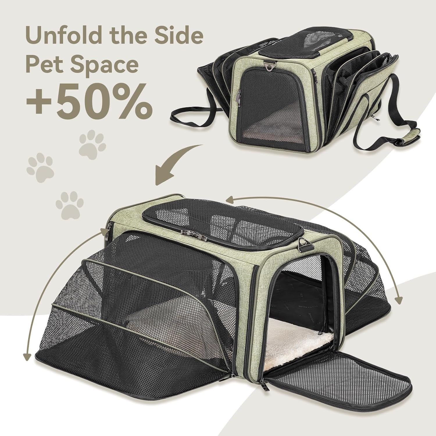 - 【COMFORTABLE SPACE】Extra extended space enable pets sprawl out, lay, see all around and relax when you have a flight trip, also works great in the car, roomy and they lay in it like a bed. Carrier can be folded totally flat when not in use