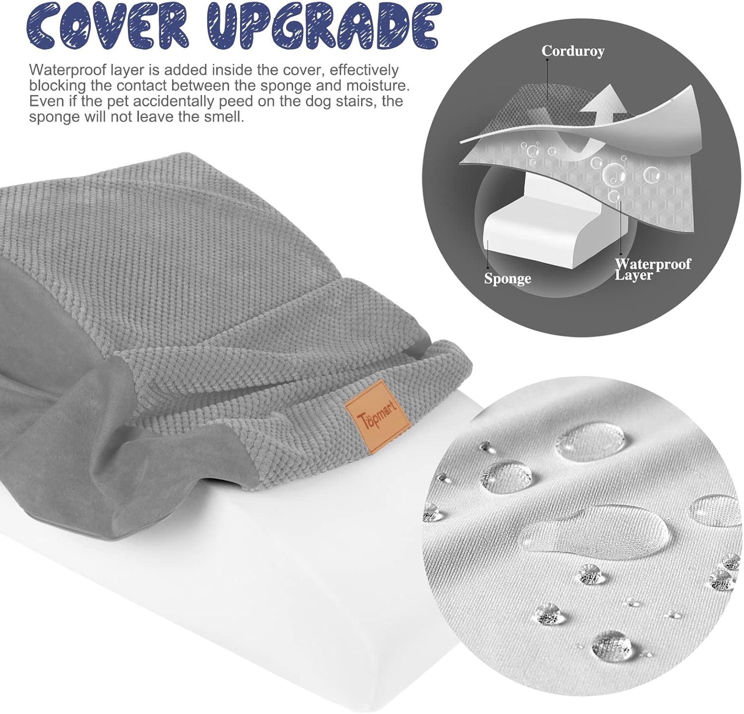 - Upgrade: Compared to the original model, we lengthened each step by 2 inches and each step is larger, increasing the safety of the product while providing a smoother climbing environment for older or leg-injured pets. Cover added waterproof layer to protect the sponge from getting dirty. Even if the pet accidentally pee on the dog ladder, will not leave a mark on the sponge.