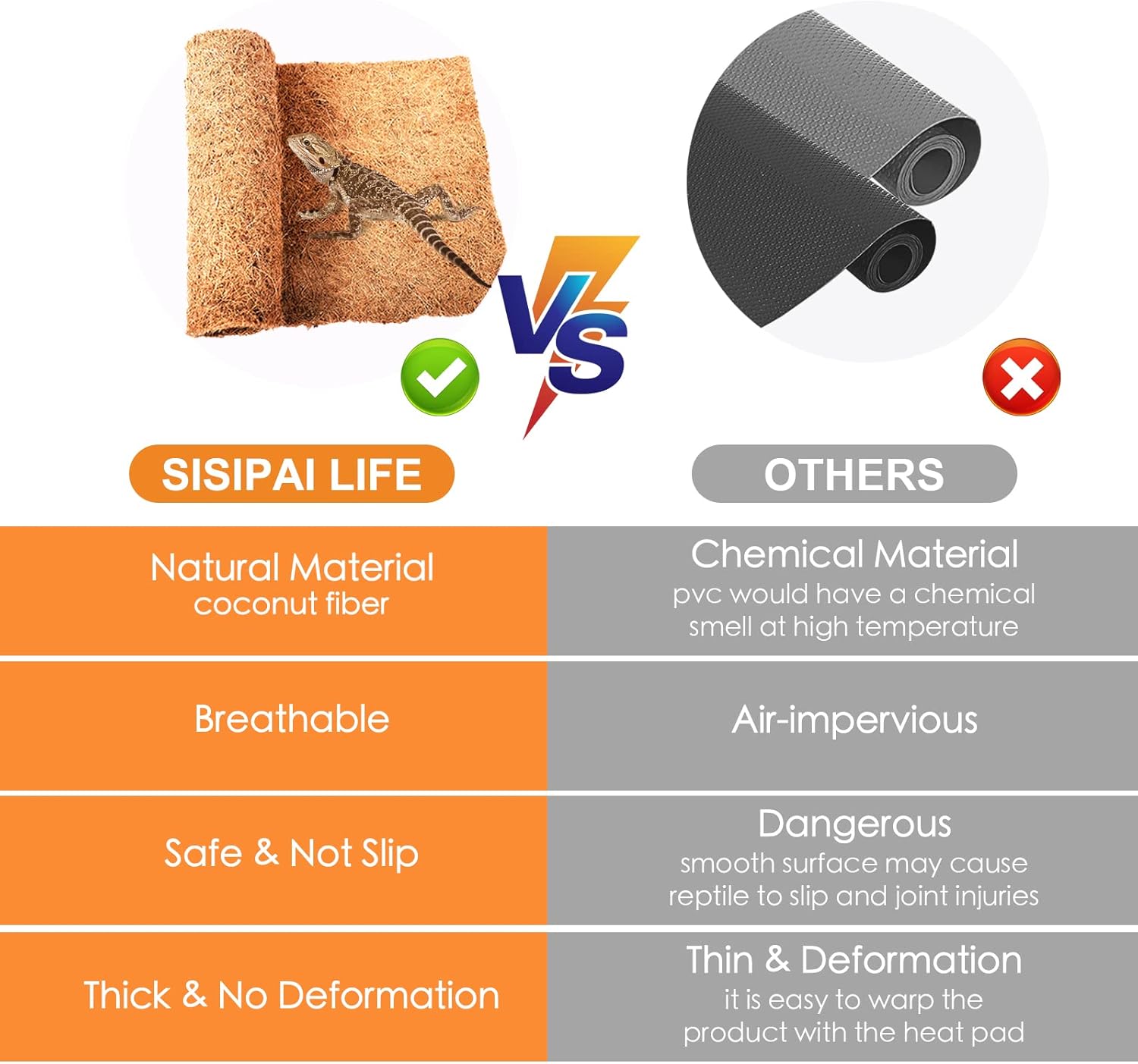 - PROTECT YOUR PET & PROVIDE COMFORTABLE HABITAT: It can provide safe habitat and protects reptiles from moisture, dirt, and scratches. Lizard can sleep on mat to prevent ascites. Coconut substrates prevent skin decay for reptiles, better protect your reptile limbs, and allow reptiles to enjoy the natural mat. It provide a super comfortable and safe habitat for your pet to lay down and rest