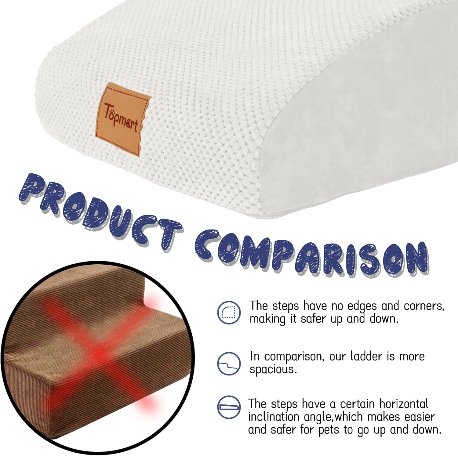 - Safer,Wider&Deeper Steps:Our dog stairs are excellent for those older dogs who are less mobile as they age or for cats with injuries. More wide and deep steps are helpful for reducing the strain that constantly jumping up and down onto lower bed,sofa can have on your pet's joints,and Topmart dog steps will not shake and slip during use. The cover made of corduroy is more frictional than other covers, pets will not slip on the stairs.