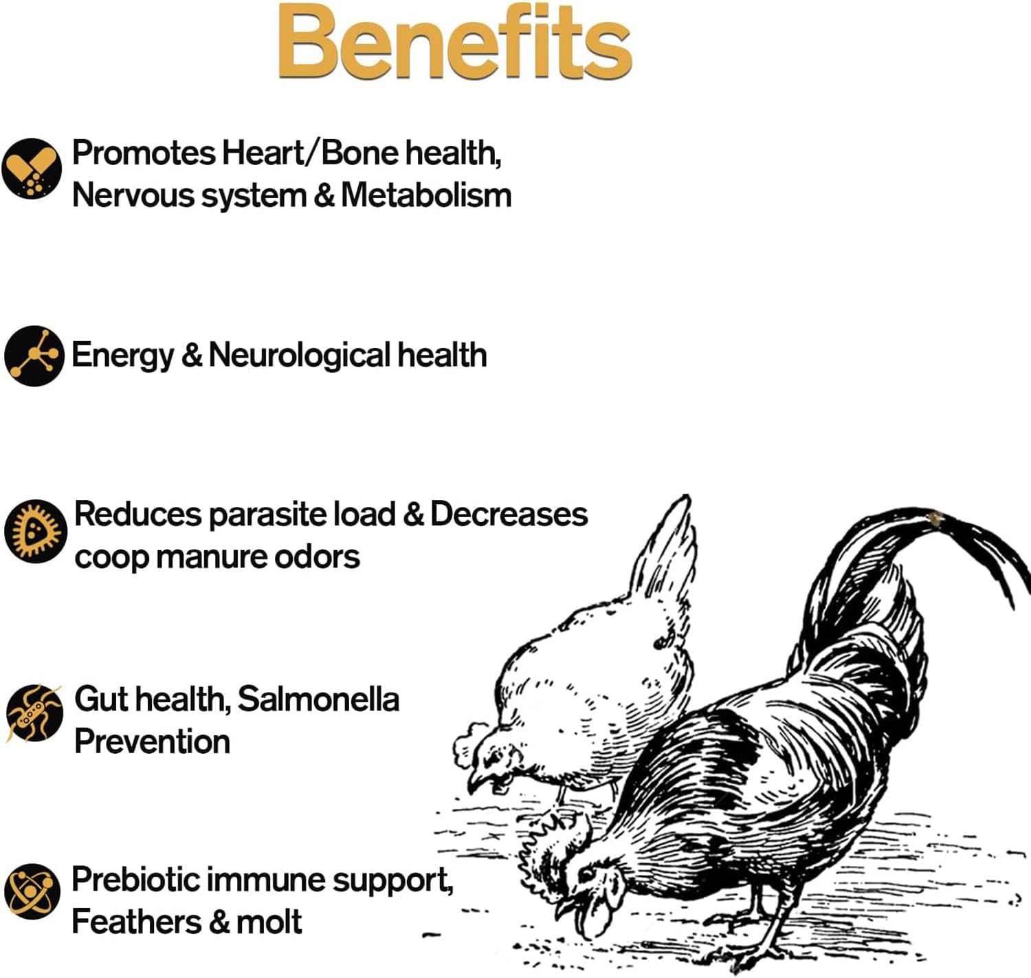 - 𝗕𝗼𝗼𝘀𝘁𝘀 𝗜𝗺𝗺𝘂𝗻𝗲 𝗦𝘆𝘀𝘁𝗲𝗺 & 𝗜𝗺𝗽𝗿𝗼𝘃𝗲𝘀 𝗛𝗲𝗮𝗹𝘁𝗵 - High protein, fiber, and natural vitamins will assist birds maintain their normal physiological processes. Will boost the immune system, promote egg laying and quality, and aid in healthier feathers.