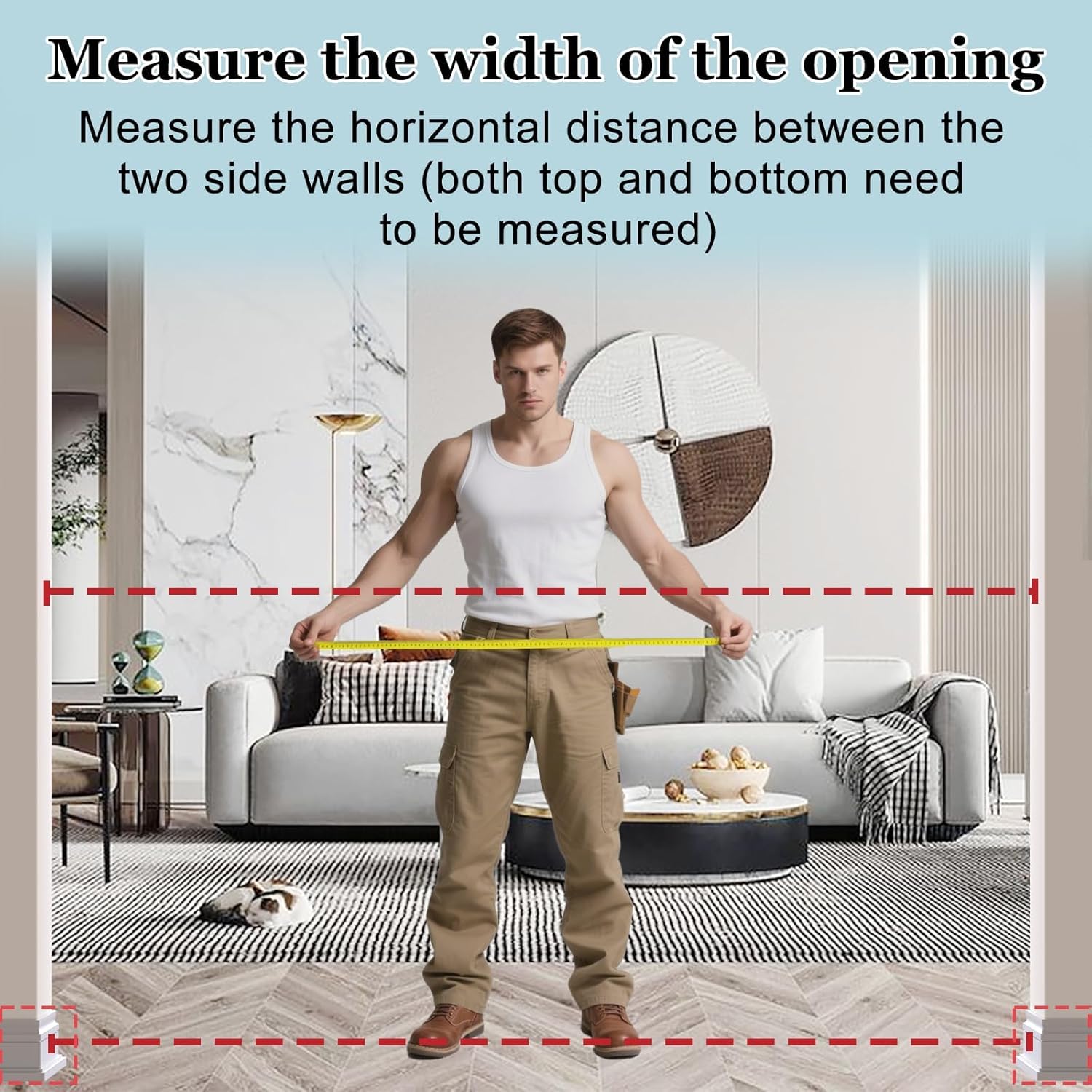 - 【Multi Use】The width of the triple lock extra wide pressure mounted baby gate can be adjusted from 25.59 inches to 81.49 inches so that it is available for stairs, doorways, and other diverse occasions to stop babies or pets to climb over. Tips: before installation, there will be a gap between the wide gate latch and the frame which is NOT a defect and it is NOT bent. This gap will disappear once installed.