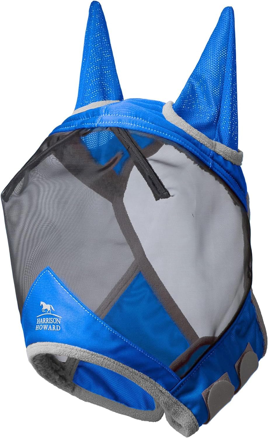 Harrison Howard Pro Luminous Horse Fly Mask Large Eye Space Standard with Ears UV Protection for Horse Signature Blue Medium Cob