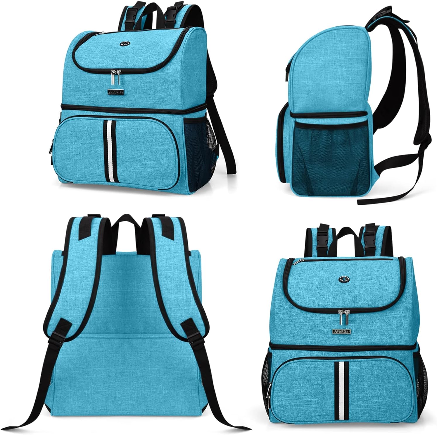 BAGLHER Pet Travel Bag, Double-Layer Pet Supplies Backpack (for All Pet Travel Supplies), Pet Travel Backpack with 2 Silicone Collapsible Bowls and 2 Food Baskets Sky Blue