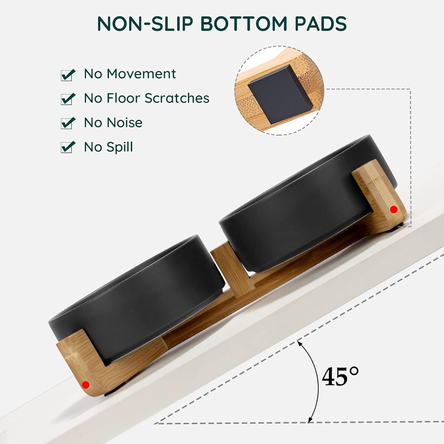 - [Natural Wooden Stand]:Unique wooden stand can effectively prevent food from spilling and keep the floor clean and tidy. Non-Slip bowl base, making it easy to pick up and put down