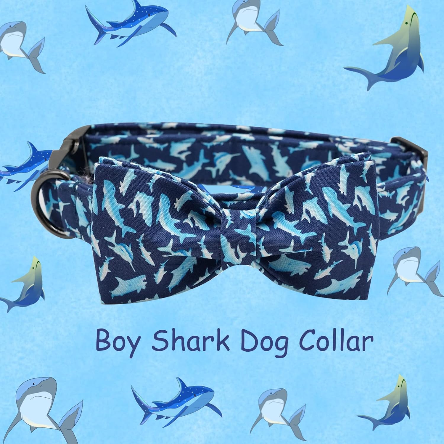 Elegant little tail Dog Collar with Bow, Shark Print Adjustable Dog Collar Cute Bowtie Dog Collar Boy Pet Collar for X-Small Puppy and Cat