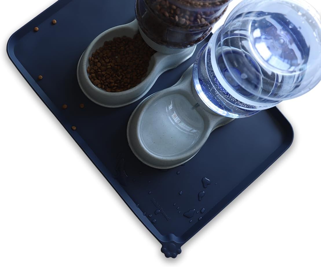 Hoki Found Large Waterproof Silicone Pet Food Mats Tray - Non Slip Pet Bowl Mats Placemat - Dog Pet Cat Feeding Mat - Dog Cat Food Mats -Pet Water Mats for Floors - French Navy