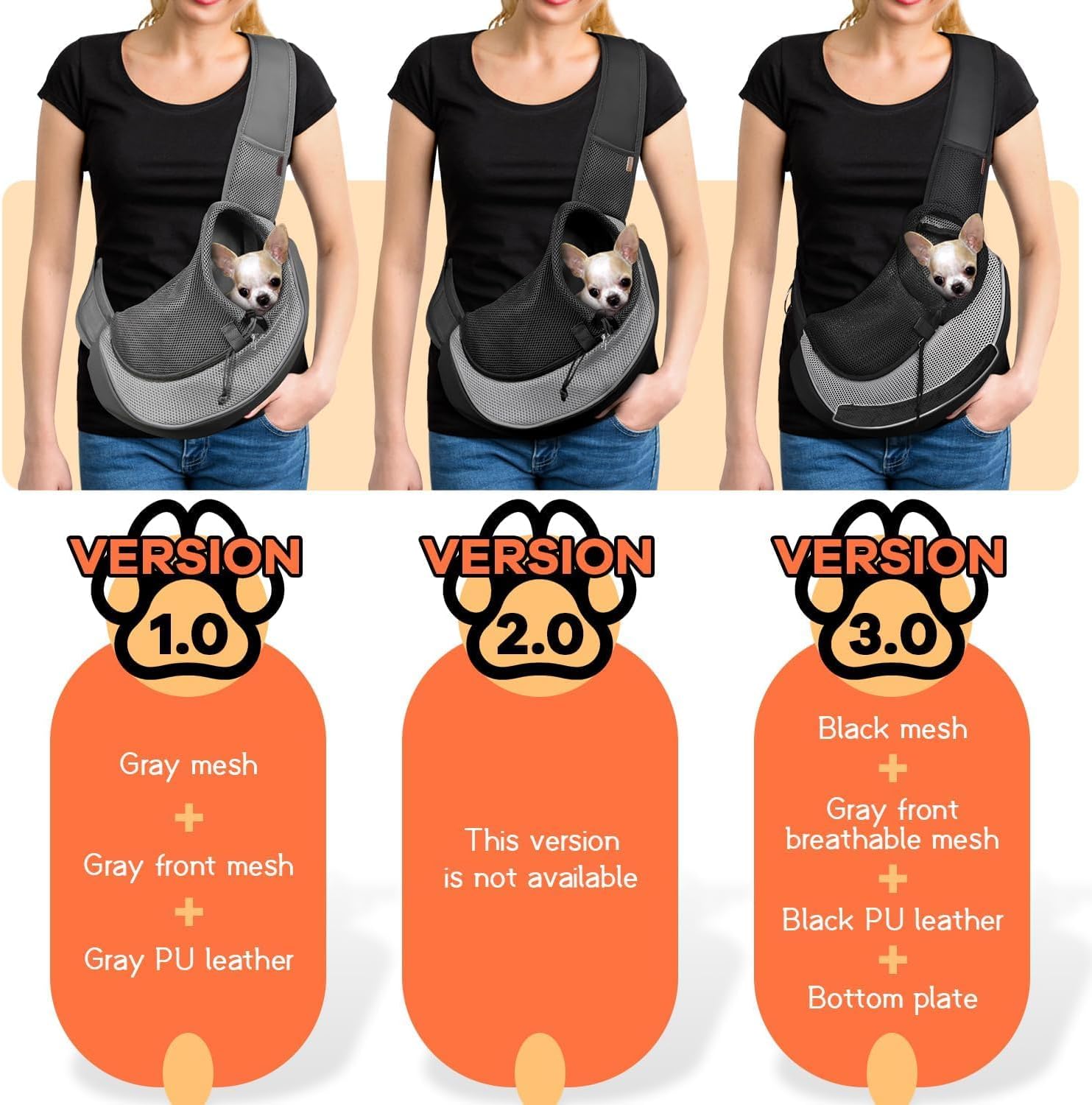 YUDODO Pet Sling Carrier for Small Dogs & Cats – Hands-Free Puppy Carrier with Safety Hook, Large Zipper Pocket, Soft Breathable Mesh, Adjustable Strap & Reflective Strip (Gray 3.0 S)
