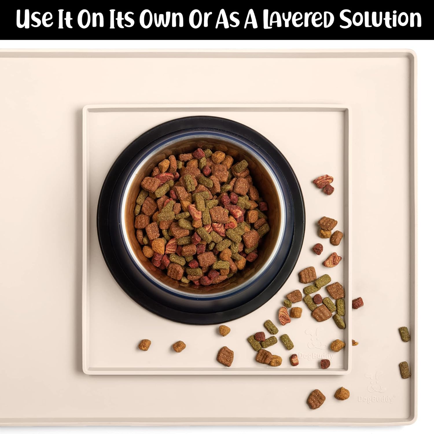 - For All Pets & All Food Bowls: DogBuddy is your pet’s buddy! Our food mat can be used for all house pets – dogs, cats, and other small animals. Use this food mat under dog and cat bowls, water fountain, automatic feeder etc. It is pet supplies must have!