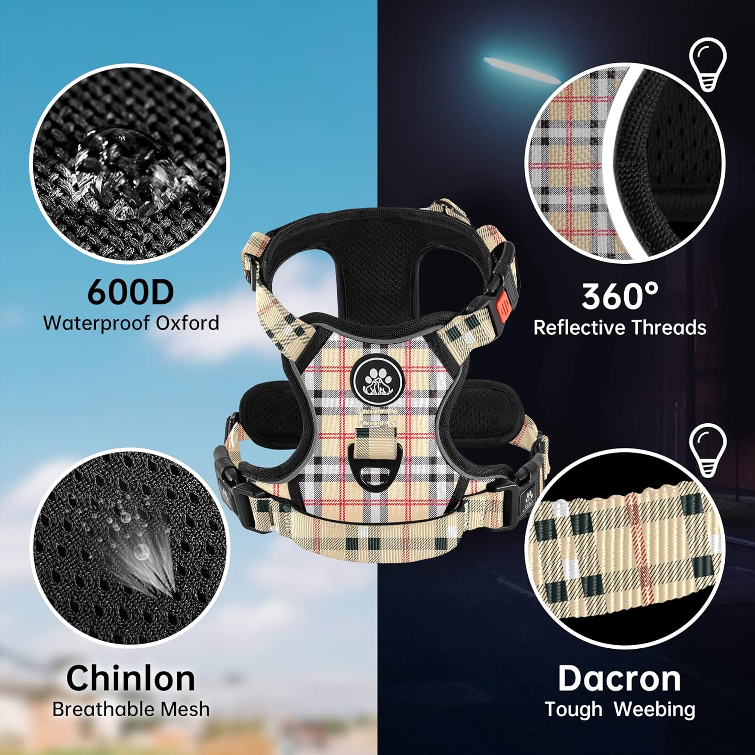 NESTROAD No Pull Dog Harness with Leash, Reflective No Choke Pet Vest Harness,Adjustable Soft Padded Dog Harness with Easy Control Handle for Large Dogs(Checkered Beige,X-Large)