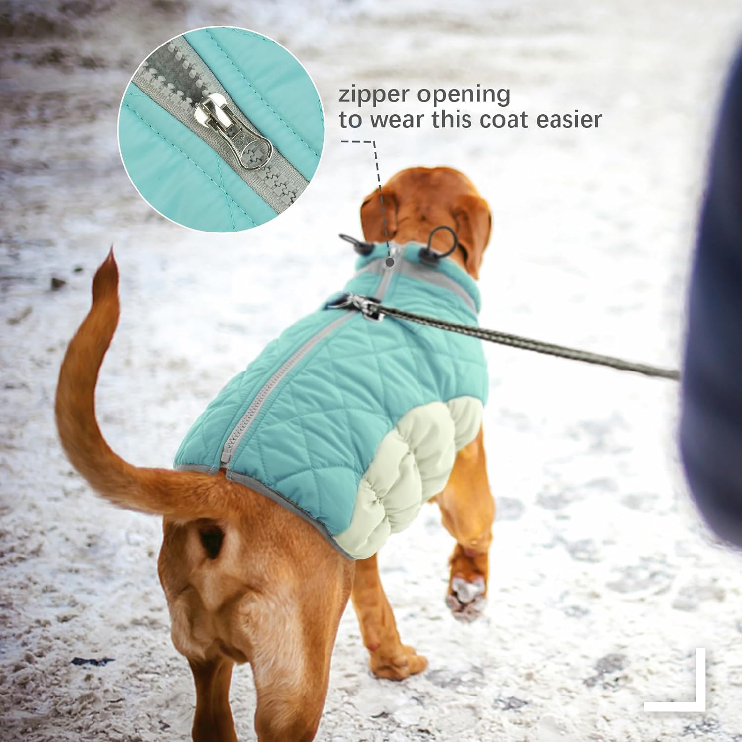 - Harness & Zipper On The Back:Say goodbye to the struggle of dressing your dog! FUAMEY dog snow jacket with zipper on the back and harness built in.The zips have been upgraded and are now very durable.Back harness allows for easy access on the go,allowing you to clip the leash directly to the jacket—no need for a separate harness or collar