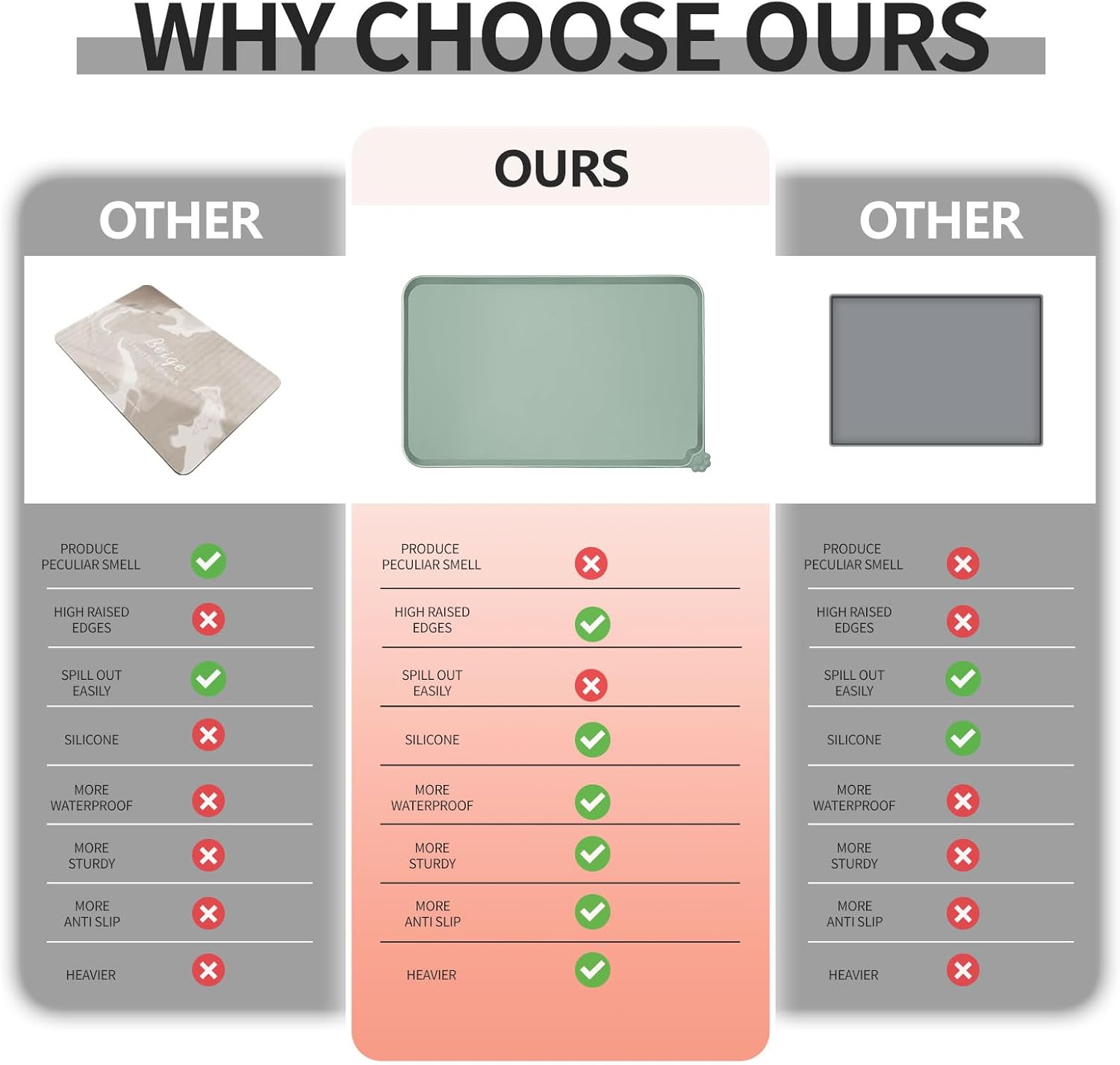 - High-raised edges: say goodbye to messy floors with our mats' high-raised edges that protect your floors from spills and splashes. Keep food and water contained and your floors mess-free