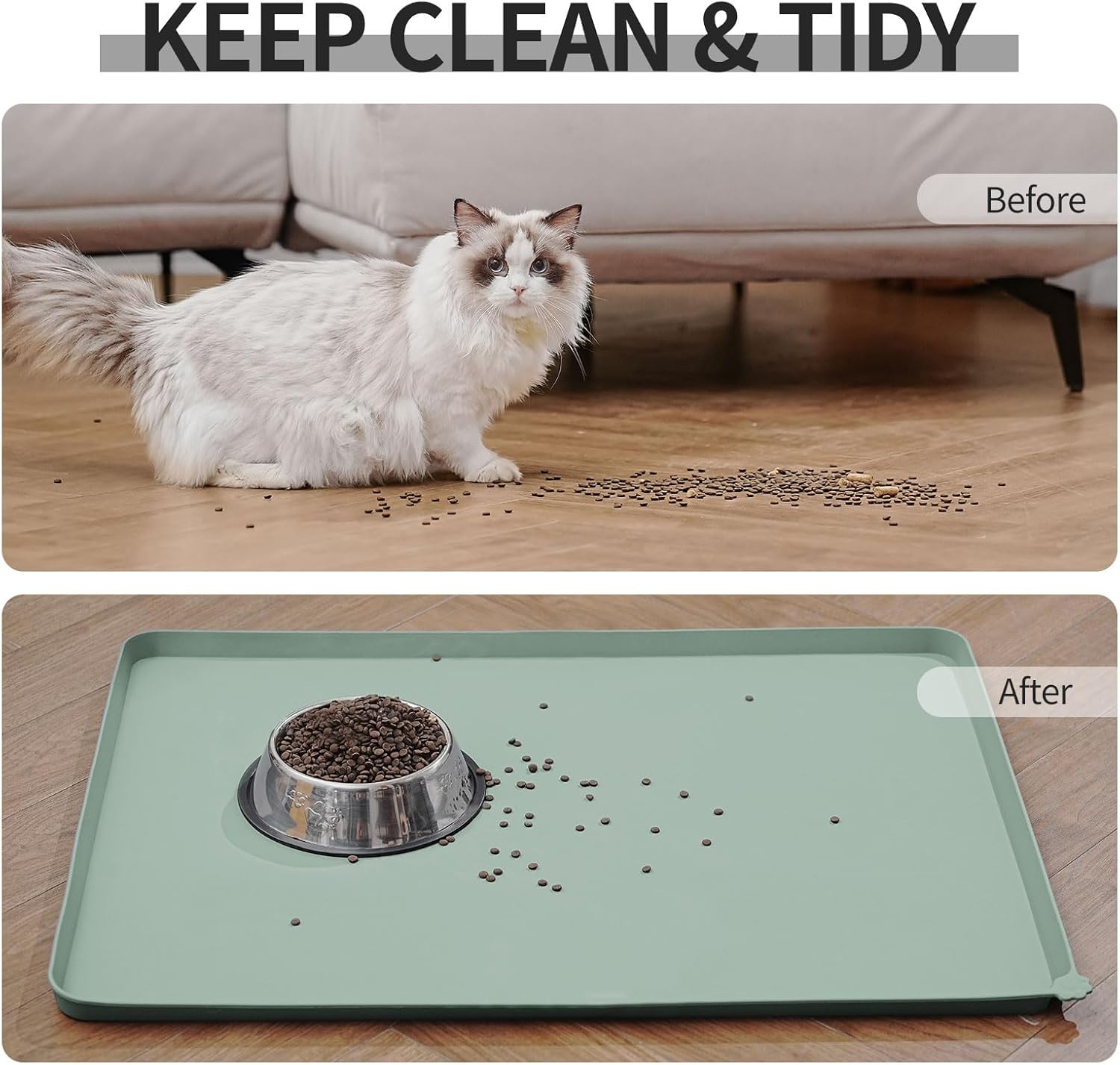 - Anti-slip design: our non-slip pet feeding mat ensures stability for your pet's bowl, preventing any water stains or spills on the floor. Enjoy peace of mind when feeding your pet, knowing that their food stays in place