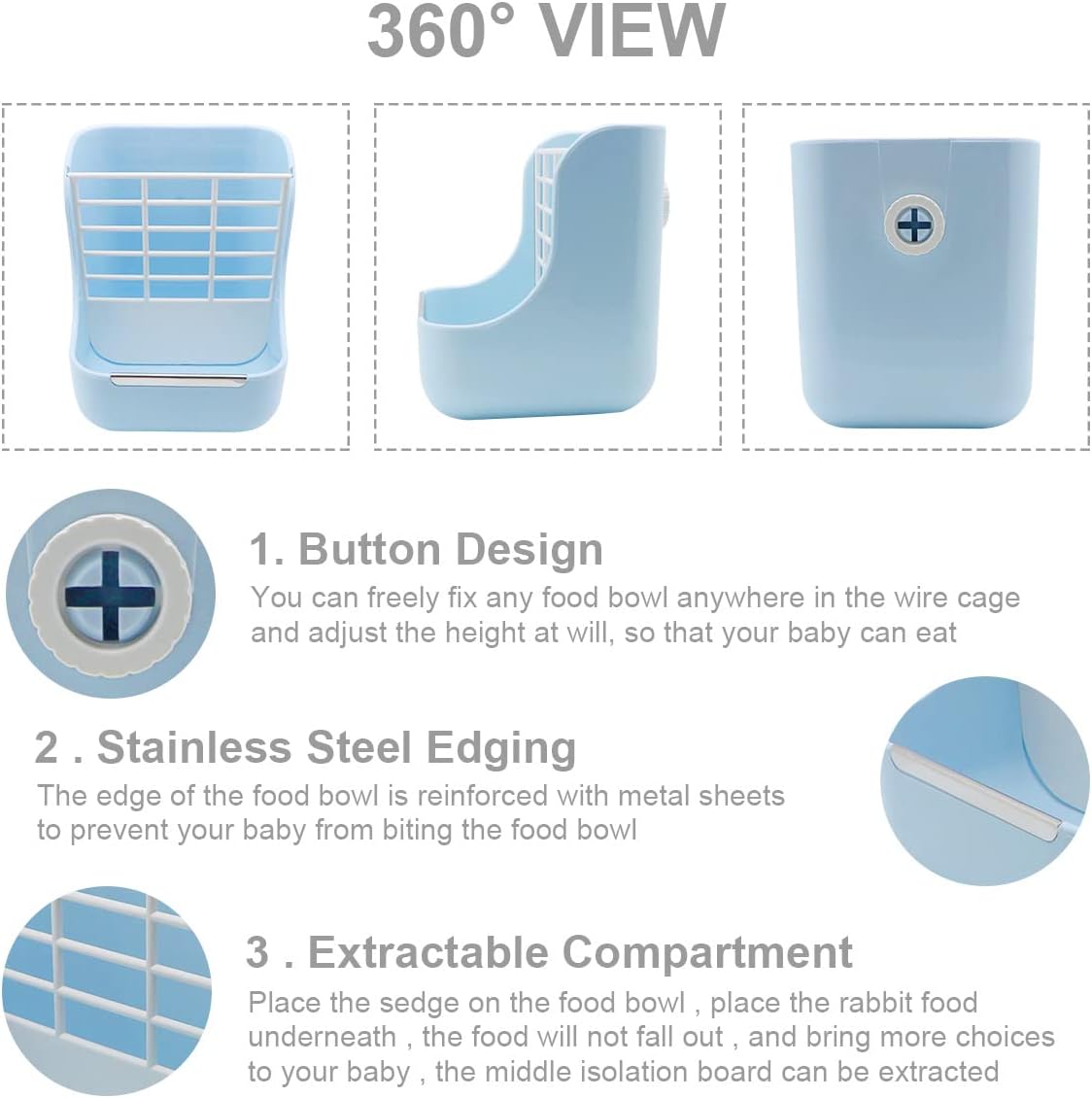 Litewoo Rabbit Hay Feeder Guinea Pig Feeder, 2 in 1 Automatic Small Animal Food Bowl Feeding Cage Accessories (Blue)