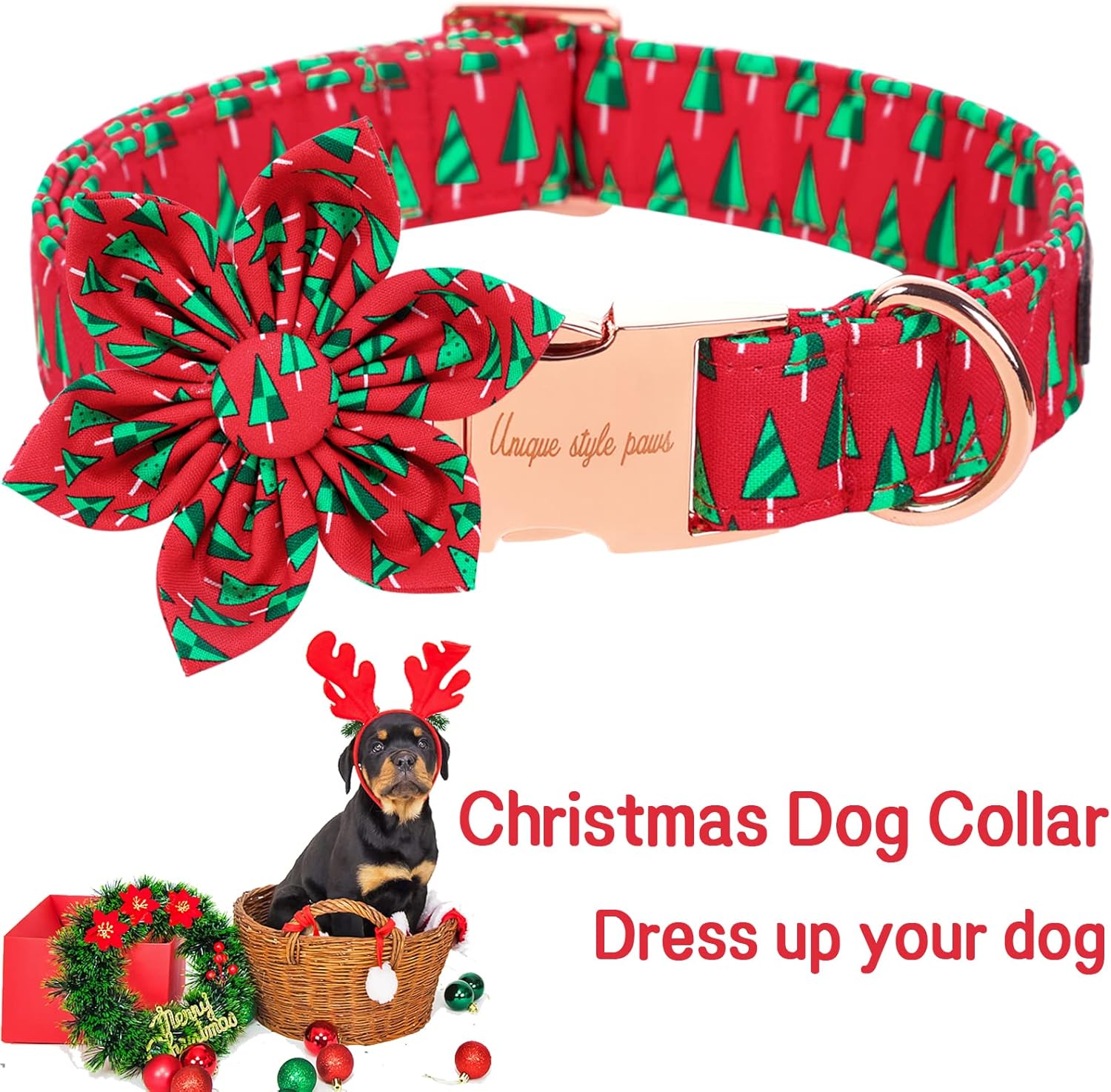 Unique style paws Christmas Dog Collar with Flower Best Winter for Small Medium Large Dogs -Christmas Tree-XS