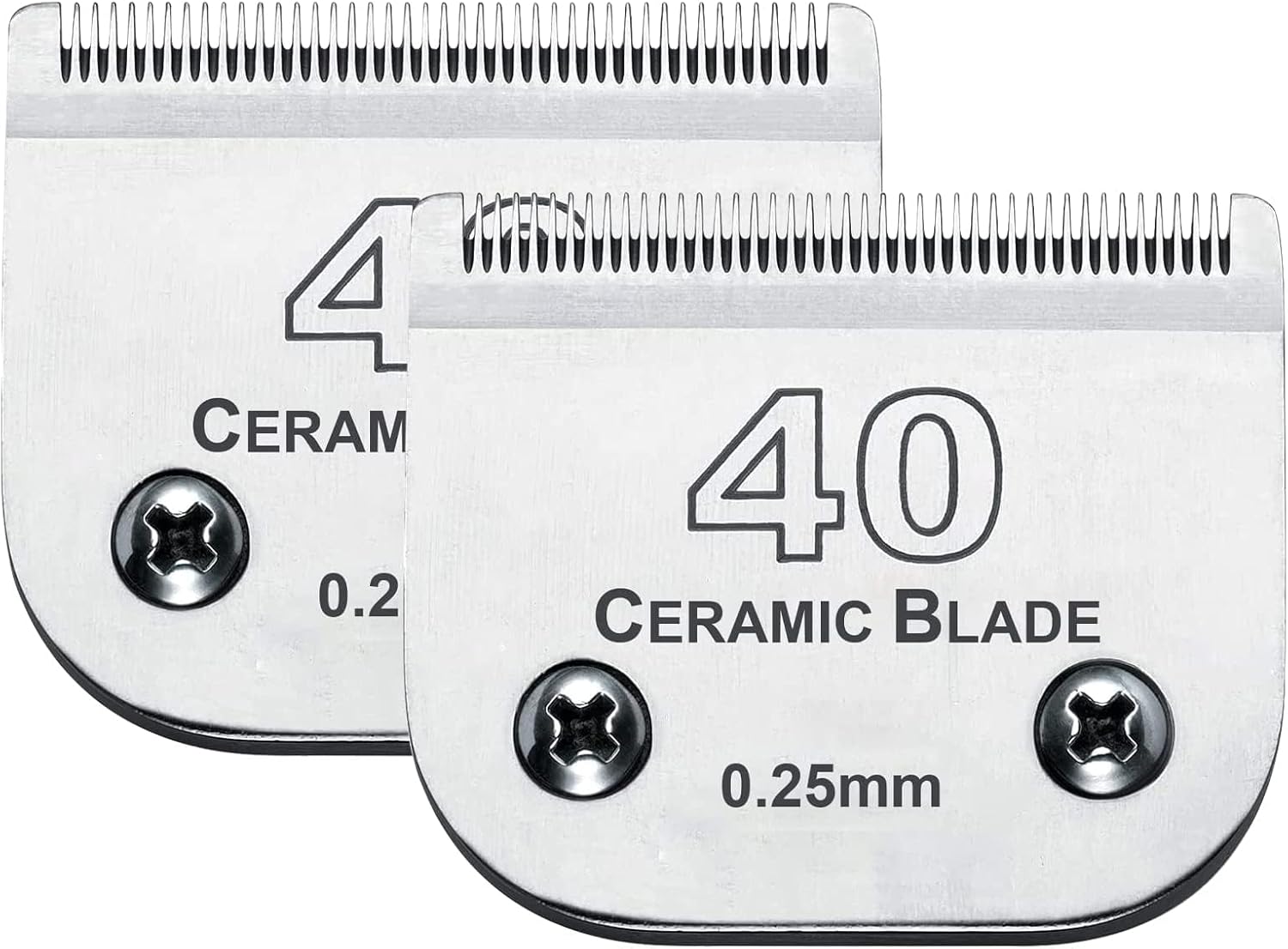 2Pack #40 Dog Grooming Clipper Replacement Blades - Compatible with Andis/Wahl/Oster, Detachable Ceramic & Stainless Steel Blade, Size 40, Cut Length 1/100" (0.25mm)