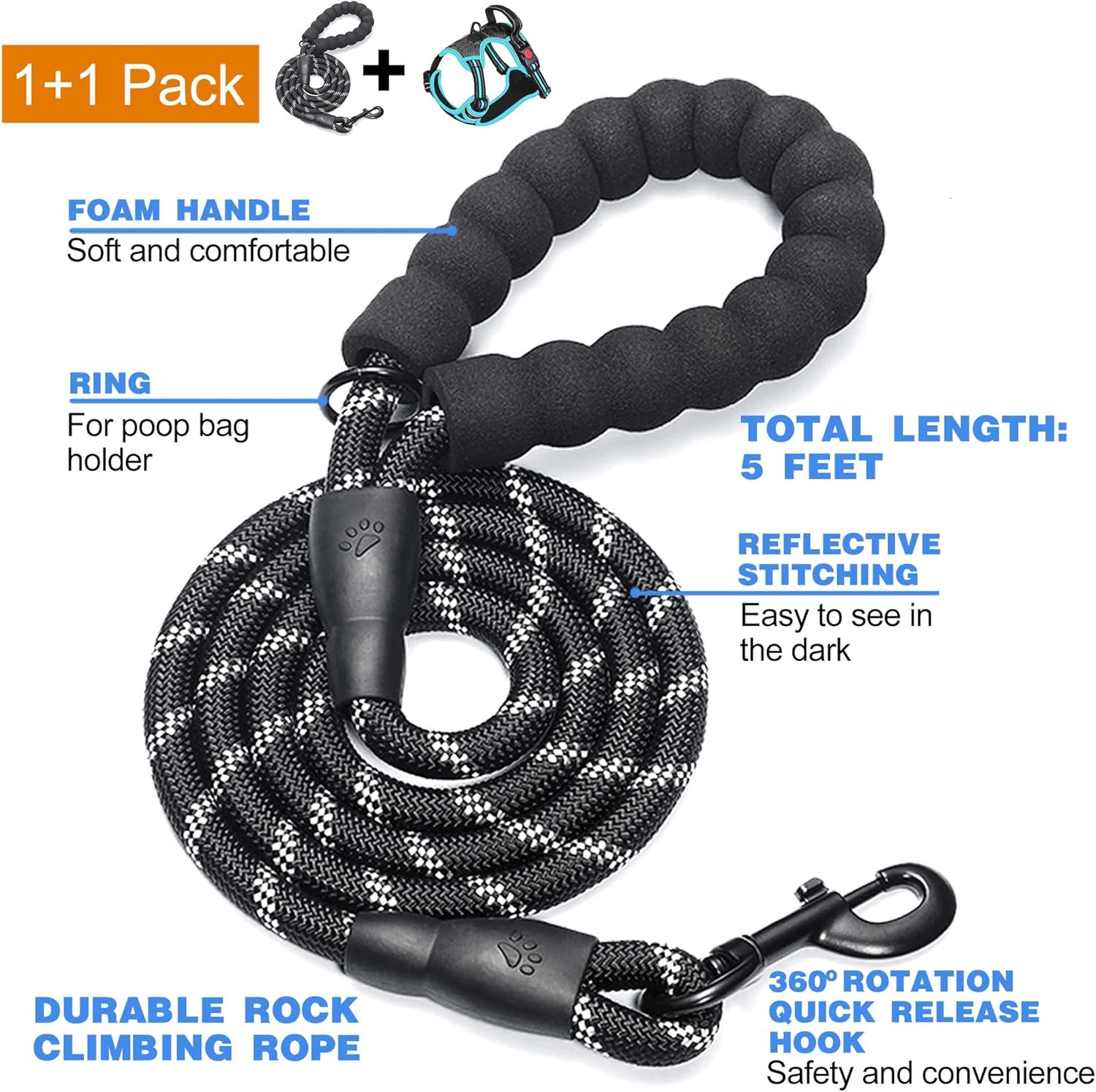 - Color : Black/Blue Harness+Leash