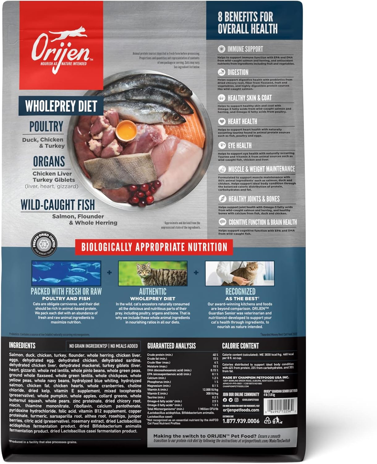- ORIJEN senior cat food kibble is tailored to support your cat's unique needs as they grow older with eight key health benefits, helping support immune support, digestion and muscle and weight maintenance