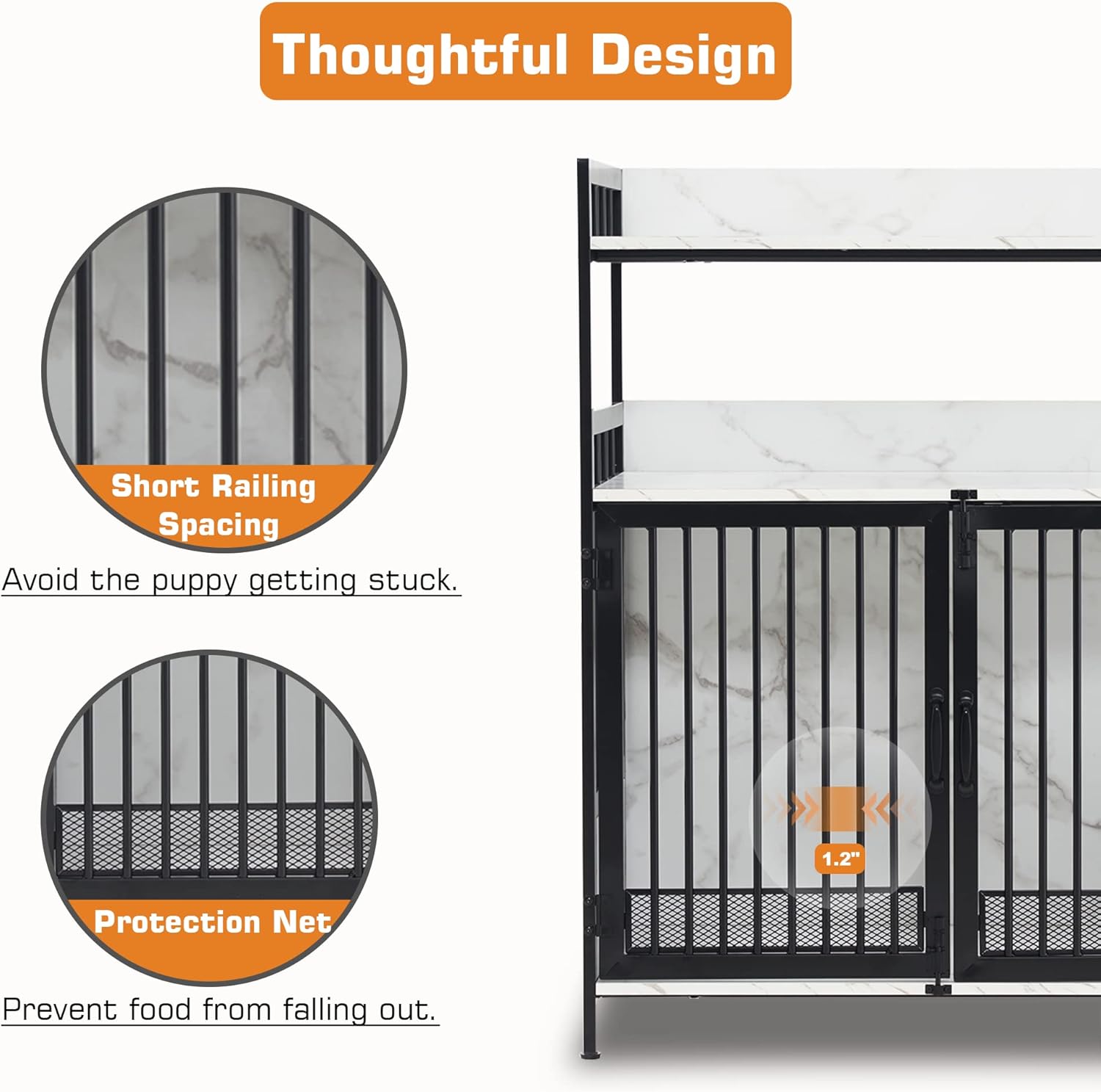 - Safe Distance: The space between the bars of the pet kennel is 1.2 inches, designed to prevent your puppy from getting stuck