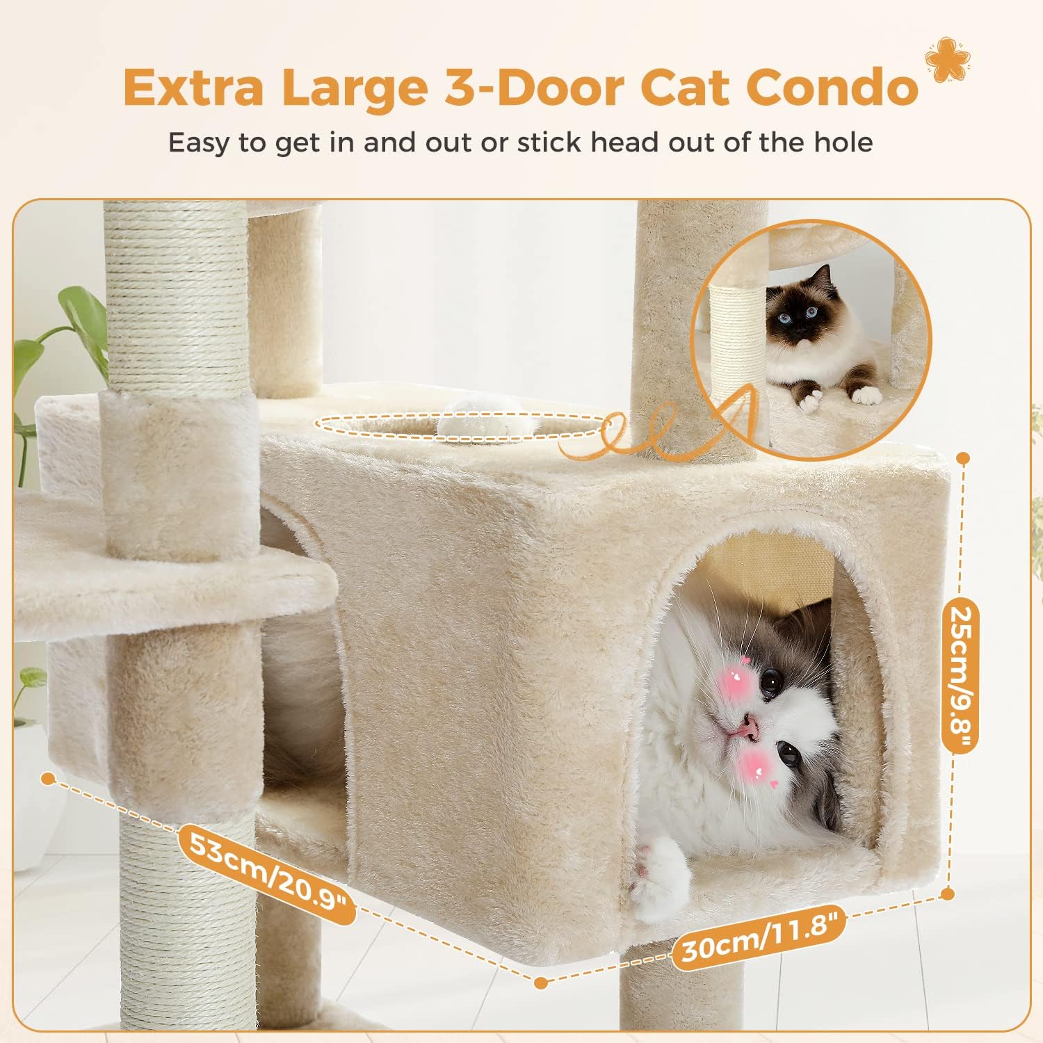- 72" Tall, Endless Climbing Fun: With the total height of 72" in 8-level structure, the super large cat tree is perfect for 4-5 big cats who love climbing up and down together. The needs of scratching, climbing, sleeping and exercising can also be fully satisfied! Especially the unique rectangle super large cat condo and wide hammock are much larger than normal ones and perfect for cats resting together.