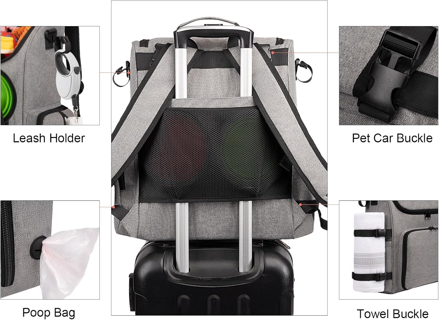 - TRAVEL&DOG WALKING ESSENTIALS: This dog weekend travel bag will accompany your pets for a good time on weekends. When you take your pet to the city to play, the pet car buckle can be equipped with a dog basket for cars and cat strollers, making your pets safer.In every trip, this pet bag will witness every happy moment of you and your pet, and not only the pet utensils but also the unique memories of you and your pet are packed into the backpack