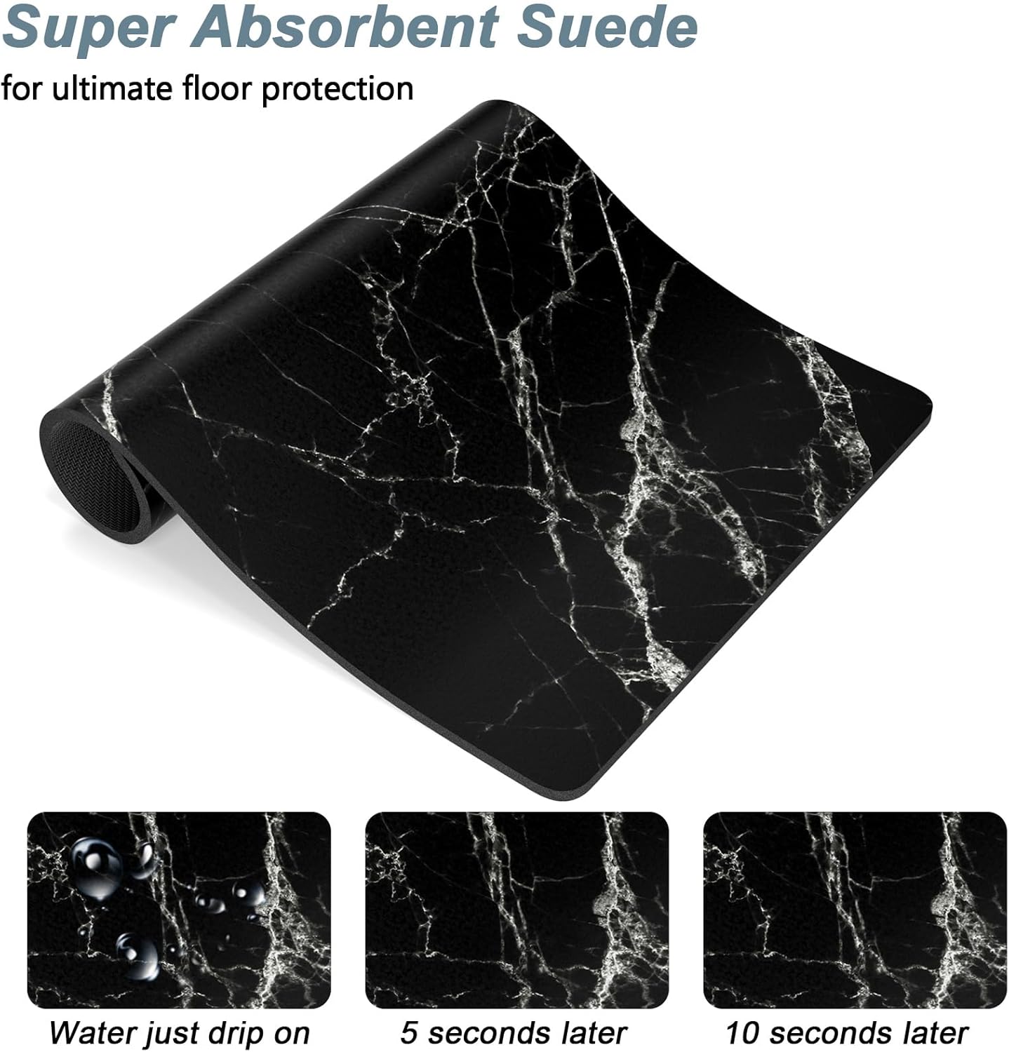 Rnivvi Dog Food Mat, 16" x 24" Marble Absorbent Dog Cat Bowl Mat for Food and Water, Cute Anti-Slip Rubber Pet Feeding Rug Protect Floors, Puppy Placemat for Feeding & Watering Supplies, Black