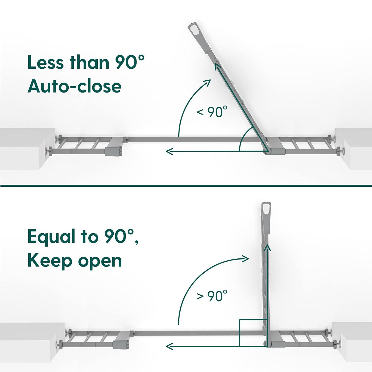 - AUTO-CLOSE: This safety gate has an auto-close function that gently closes the gate and a stay-open feature that keeps it open. It can be opened easily with one-hand operation even while holding a baby, free to go through from both sides