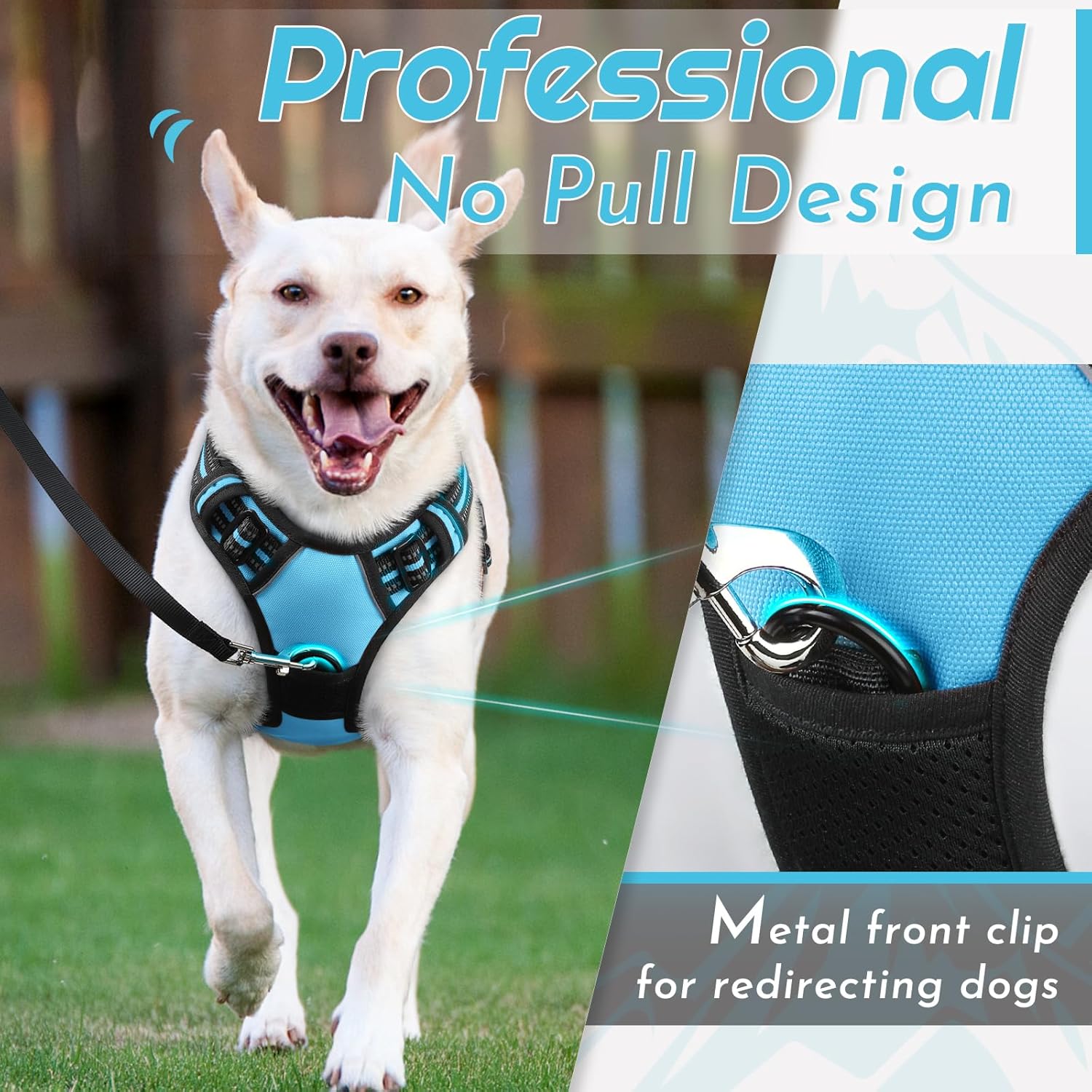 - No Pull & Better Control: Our no pull dog harness is typically designed with 2 sturdy metal leash rings for leash attachment. If you use the front hook on the chest, it will reduce the pulling, a perfect choice for dog training. The back leash ring is great for casual walks, jogging, hiking, etc.