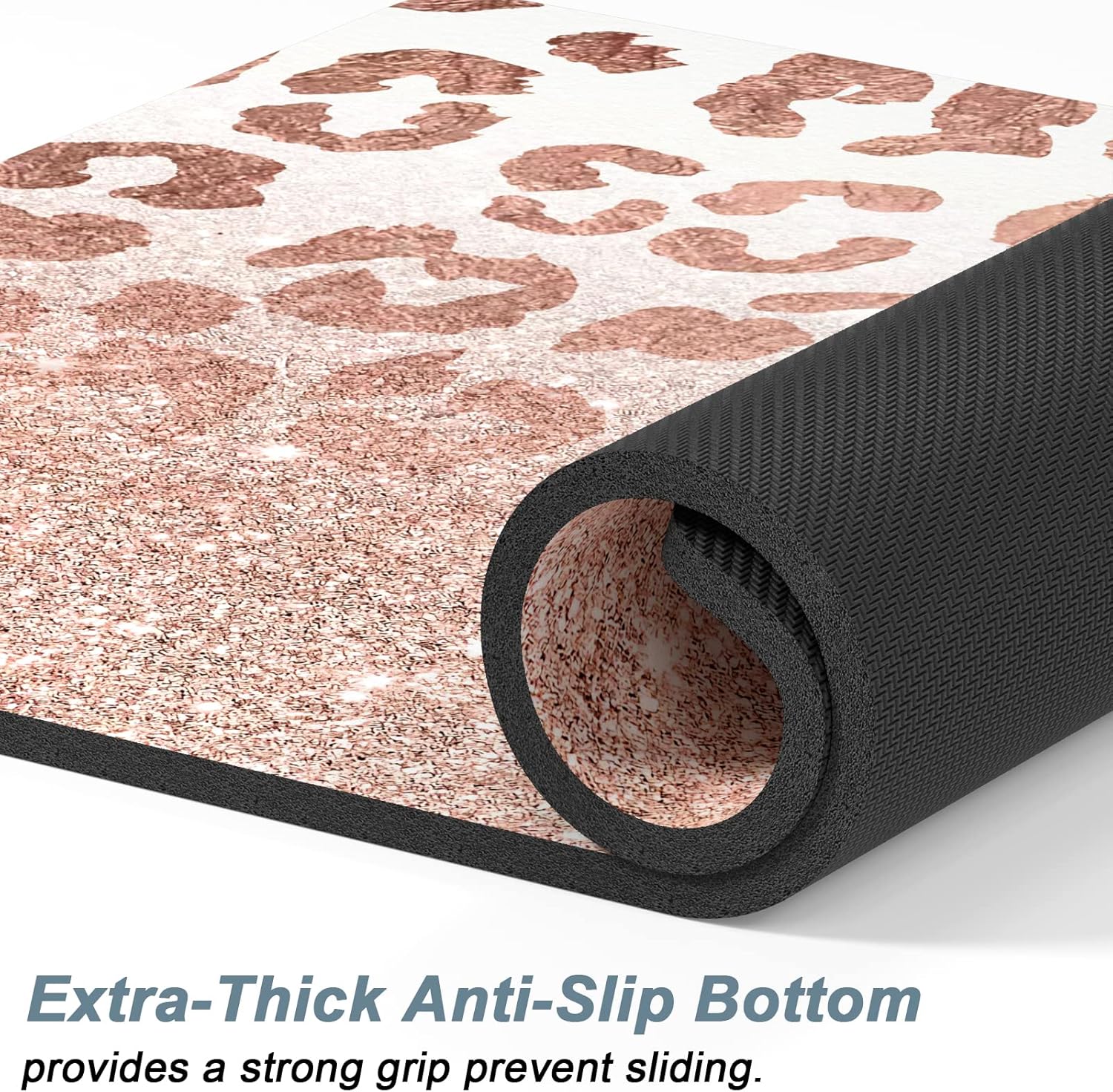 Rnivvi Dog Food Mat, 12" x 19" Leopard Absorbent Dog Cat Bowl Mat for Food and Water, Cute Anti-Slip Rubber Pet Feeding Rug Protect Floors, Puppy Placemat for Feeding & Watering Supplies, Rose