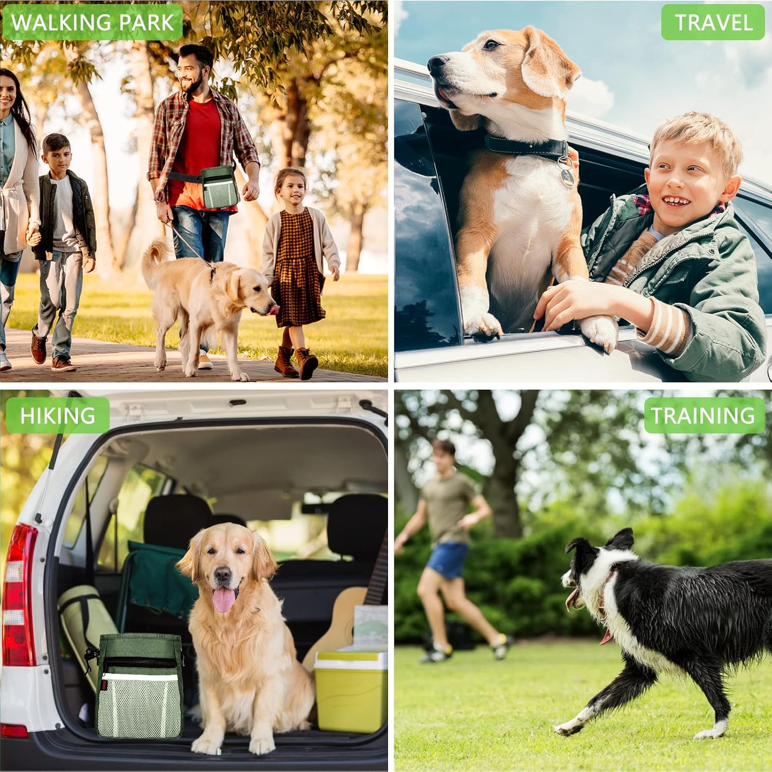 - Multiple Ways To Wear — Equipped with portable shoulder straps, waist belts and waist clips, you could find a comfortable way to wear the treat pouches for pet training without keeping your hands busy