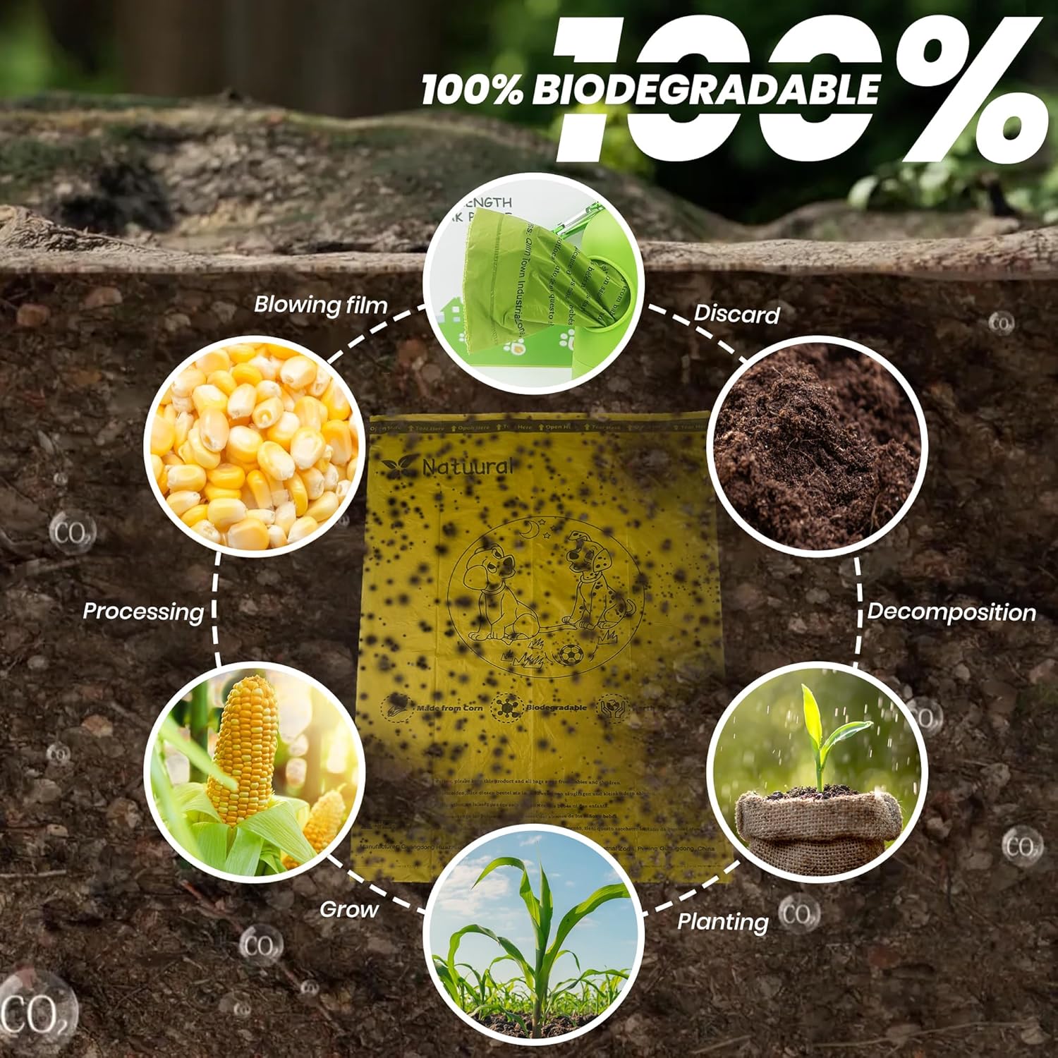 - Green & Strong: These biodegradable poop bags are designed from cornstarch materials, leakproof and tear resistant, that effectively locks in odors.