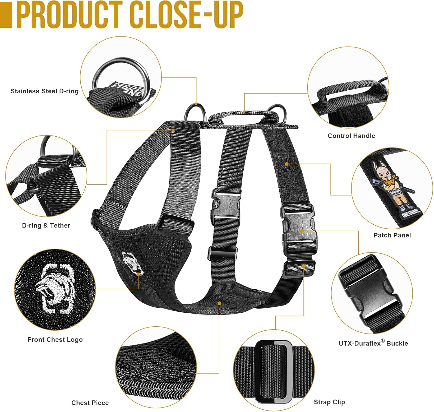OneTigris Dog Safety Vest Harness, REX Car Use Dog Harness Adjustable Pet Harness with Leash for Medium Large Dogs(Black,M)