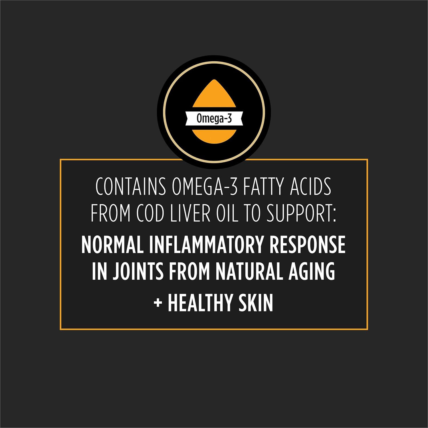 - Contains Omega-3 fatty acids for dogs from cod liver oil to support normal inflammatory response in joints from natural aging and healthy skin for dogs