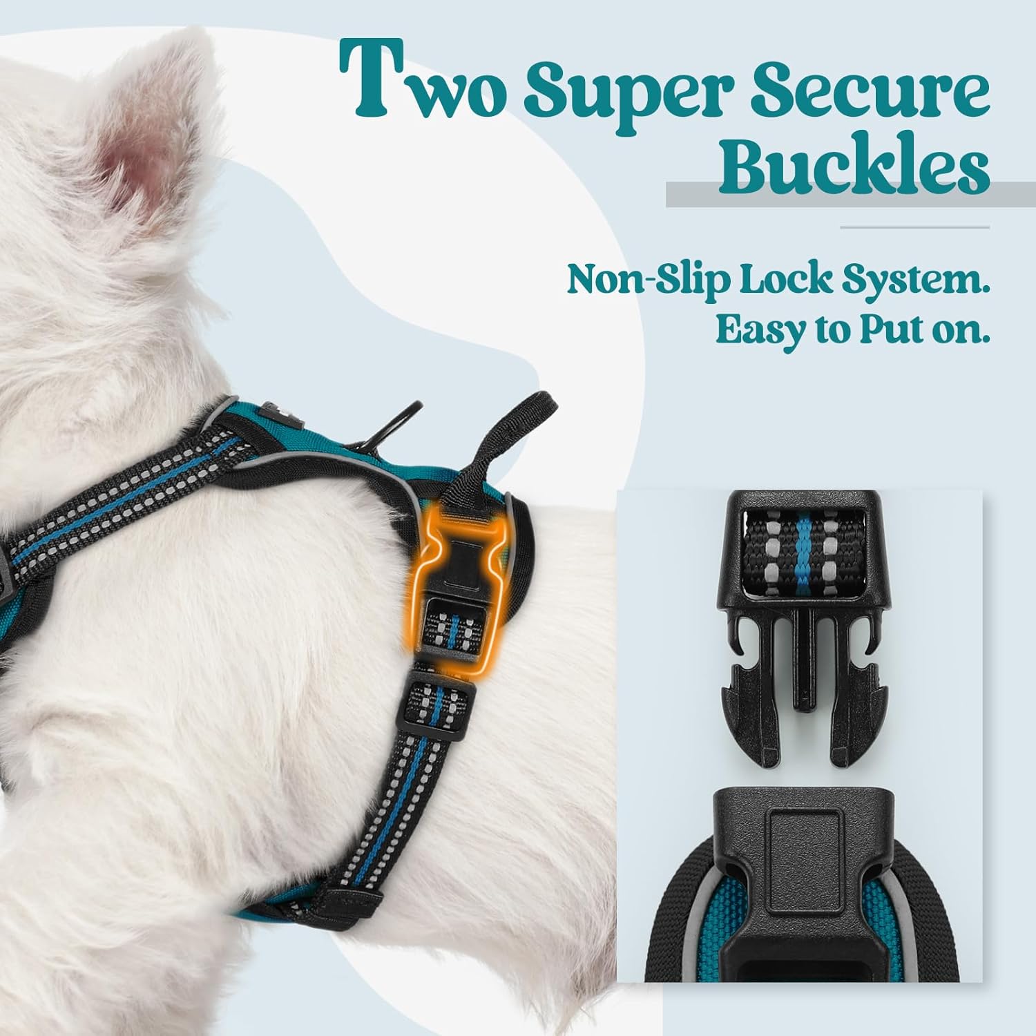 - No Pull, No Choke - Our non-pulling dog harness is specially designed with 2 metal leash rings for safer dog walks. Use the chest attachment clip to stop your dog from pulling on walks, perfect for dog training or dogs who tend to pull. The back one is great for casual walks, jogging, hiking, etc