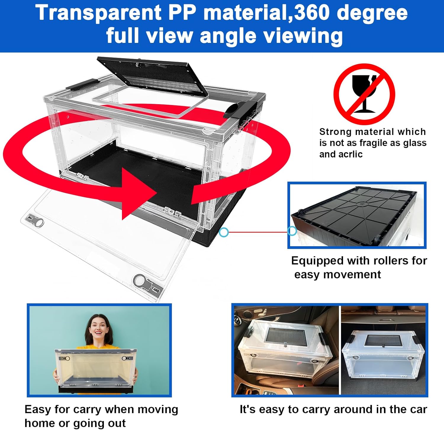 - 【360 degree fll angle viewing】Our pet hamster reptile cage is made of semi transparent PP material, and the pet's state inside the cage can be observed from various angles