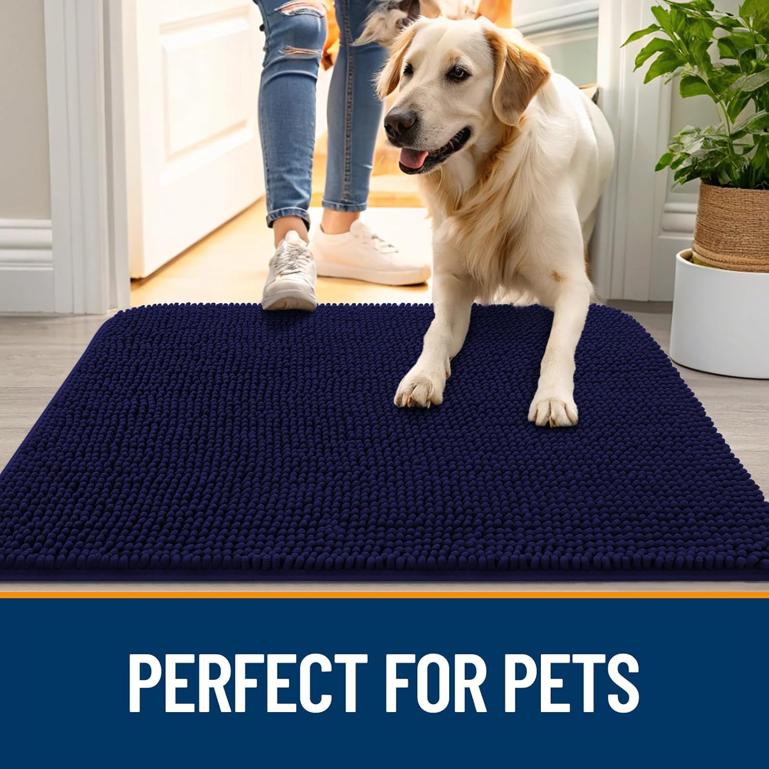 OLANLY Dog Door Mat for Muddy Paws 47x24, Absorbs Moisture and Dirt, Absorbent Non-Slip Washable Doormat, Quick Dry Chenille Mud Mat for Dogs, Entry Indoor Entryway Carpet for Inside Floor, Navy Blue