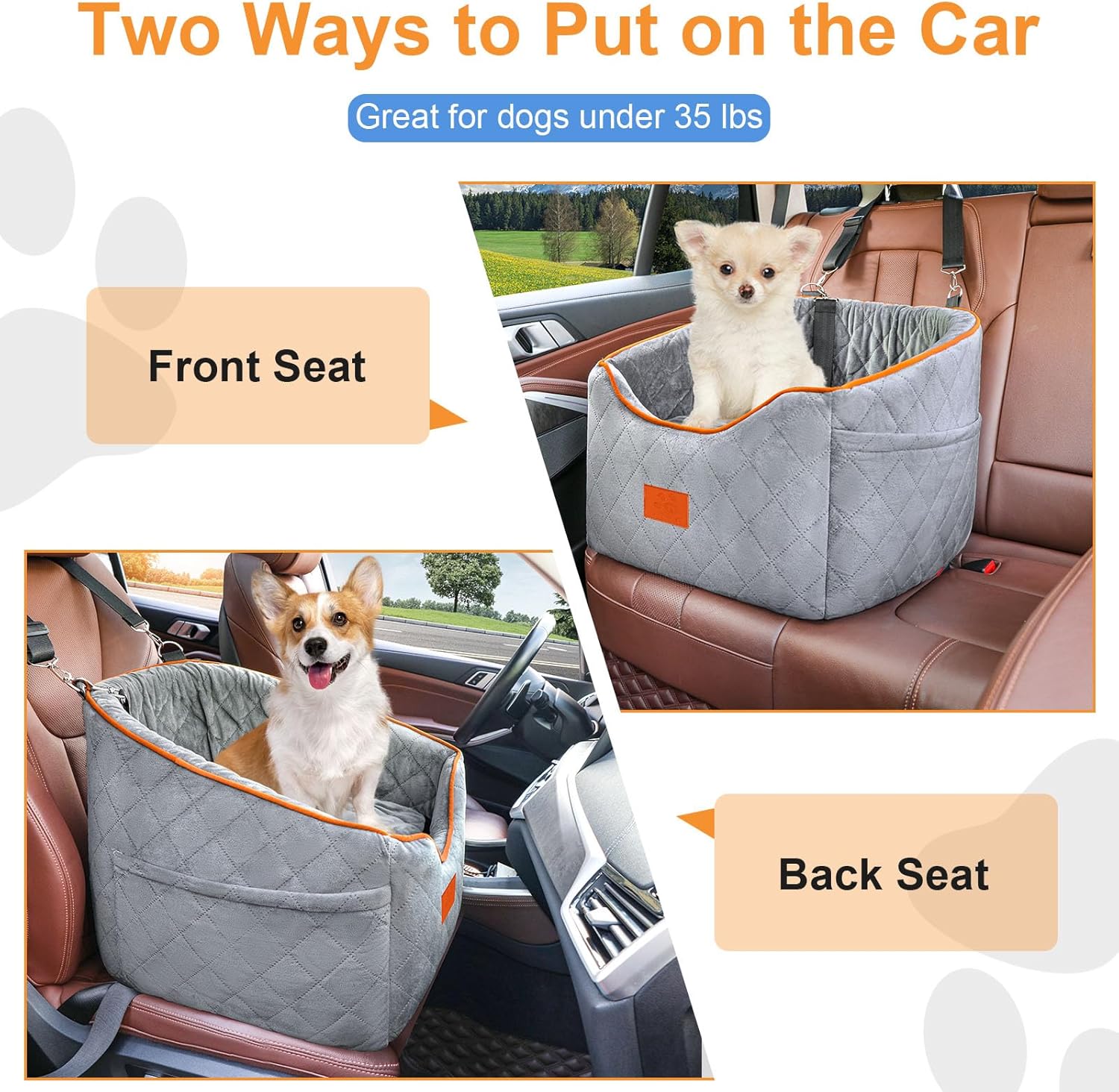 - Comfortable and Secure: The pet car seat is made of high-quality breathable fabric with a super soft plush rim, providing plenty of room for small dogs to readjust and get comfortable. The firm foam construction maintains its shape, offering a soft and cozy place for your dog to relax in extreme comfort. The non-slip bottom and safety tethers ensure that both your dog and the seat stay securely in place, preventing any sliding around while driving.