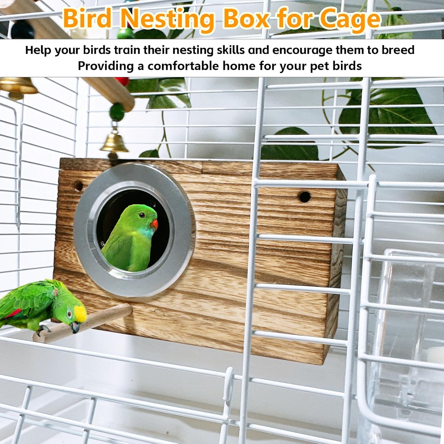 - 【Practical Design】 The parakeet parrot nest box for cages and habitats is designed with built-in partitions to prevent bird eggs from rolling. The metal components are electroplated to prevent rusting. The smooth round entrance allows your bird to enter and exit easily without injury. The perch at the entrance facilitates birds entering the nesting box while also satisfying the parrot's habit of perching on the shelf.