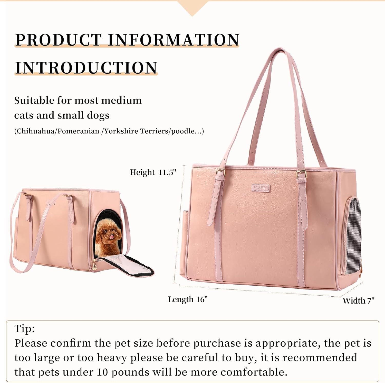 Fashion Dog Purse Pet Carrier Leather Bag for Small Dogs Cats Puppy, Portable Tote Bag Airline Approved Soft-Sided Carriers (Pink)