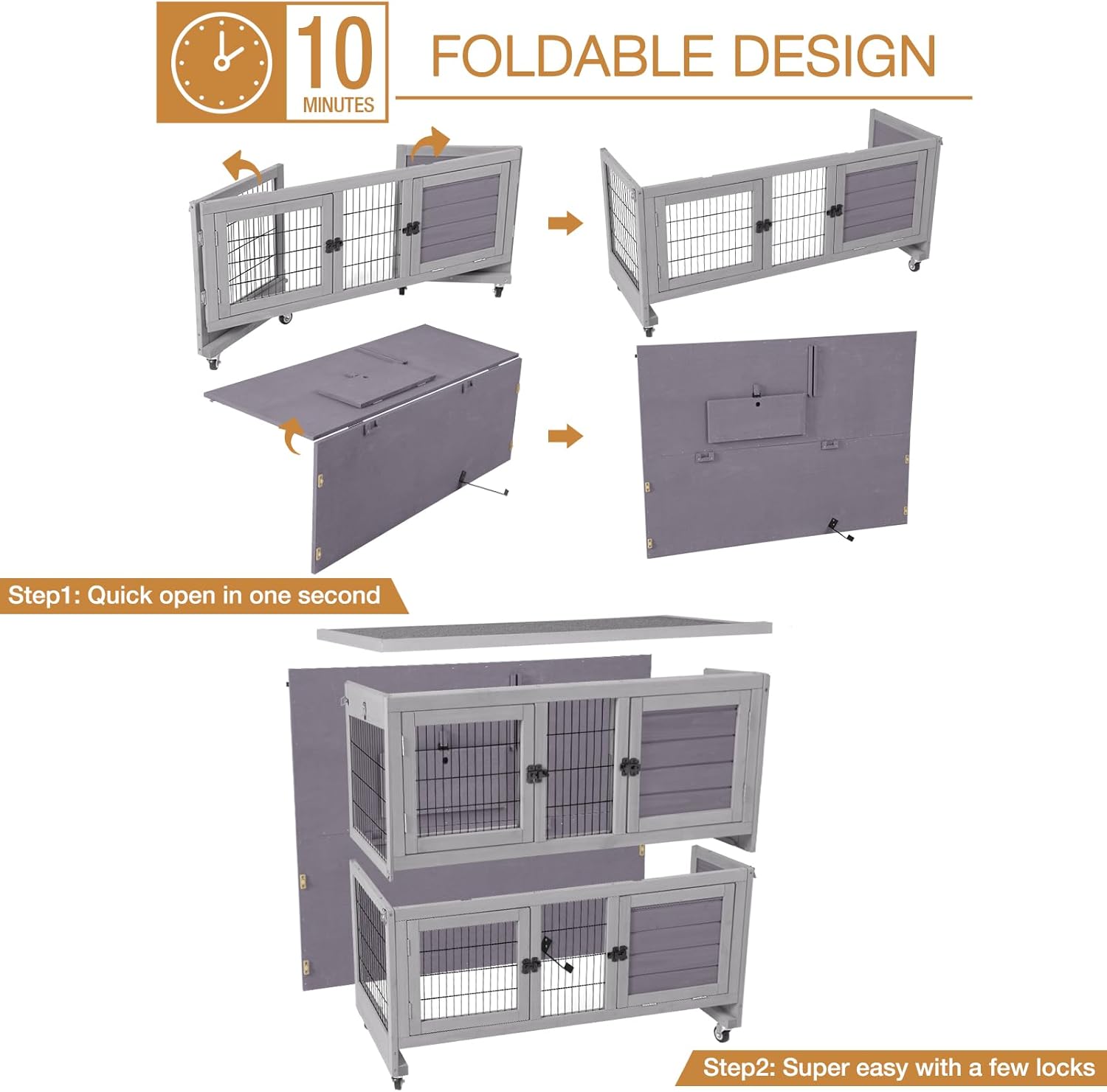 GUTINNEEN Folding Rabbit Hutch Indoor Bunny Cage in No Time Assemble Guinea Pig Cage Rabbit House Movable
