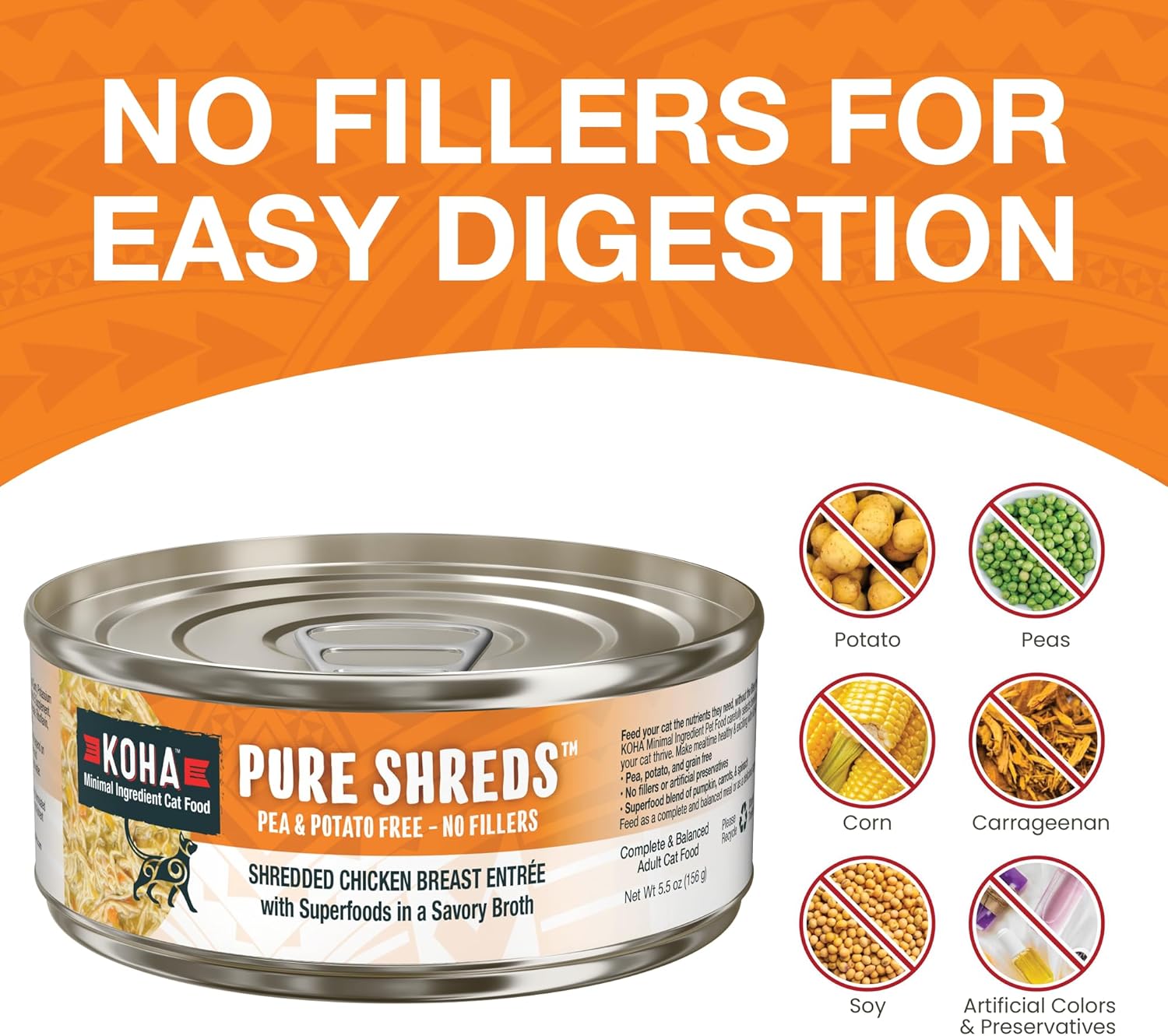 KOHA Pure Shreds Chicken Entrée for Cats, High Protein Wet Cat Food, 5.5oz Cans (Pack of 12)