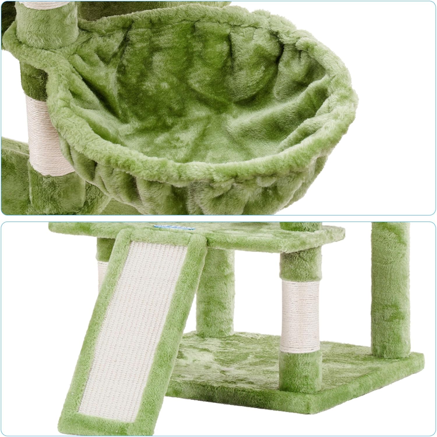 - Multiple places for cats to sharpen claws and play: Cats naturally love to sharpen their claws. A wide scratching board and sisal-wrapped scratching posts are just what cats need. Extra toy balls add more fine for cat to play