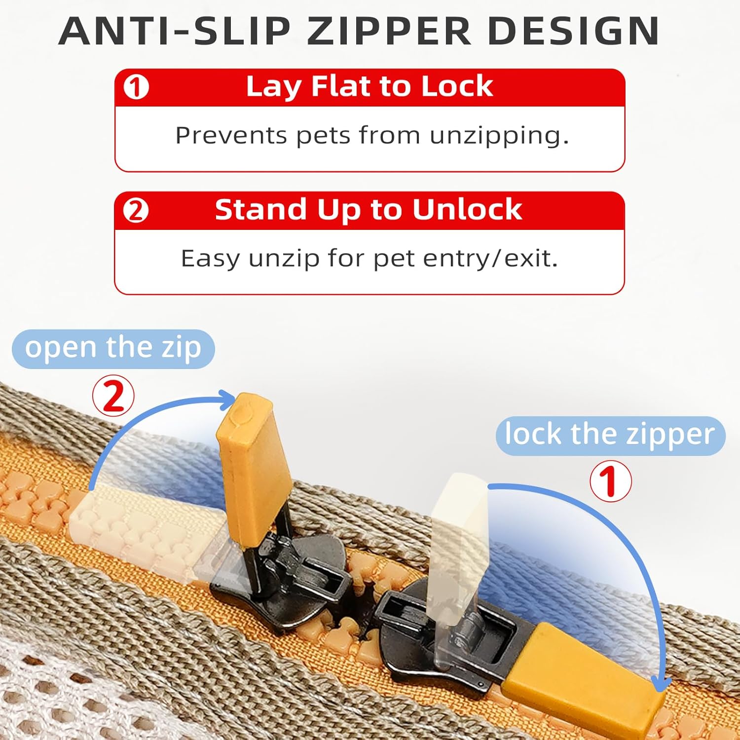 - 【Double escape-proof design:】The pet carrier's zipper features an anti-escape design, which allows it to be easily opened only when the zipper pull is at a 90-degree angle to the zipper teeth. It becomes very difficult to open when the zipper pull is parallel to the zipper teeth. Additionally, there is a safety strap design that can be attached to your pet's chest or collar to prevent escape attempts.