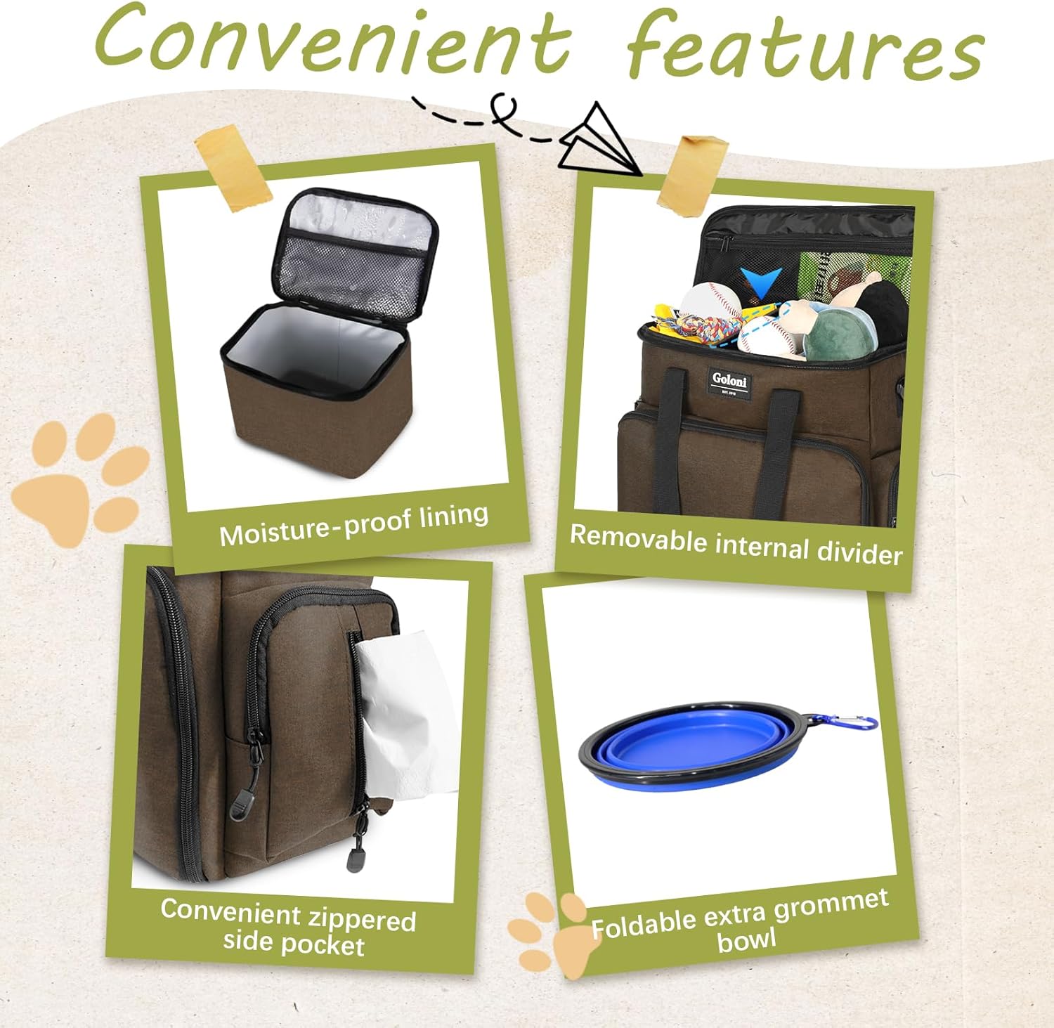 Dog Travel Bag Airline Approved–Pet Travel Tote with Collapsible Bowls,Food Containers & Feeding Mat–Multi-Pocket Organizer for Dogs & Cats, Durable & Water-Resistant for Hiking,Trips,Outdoors