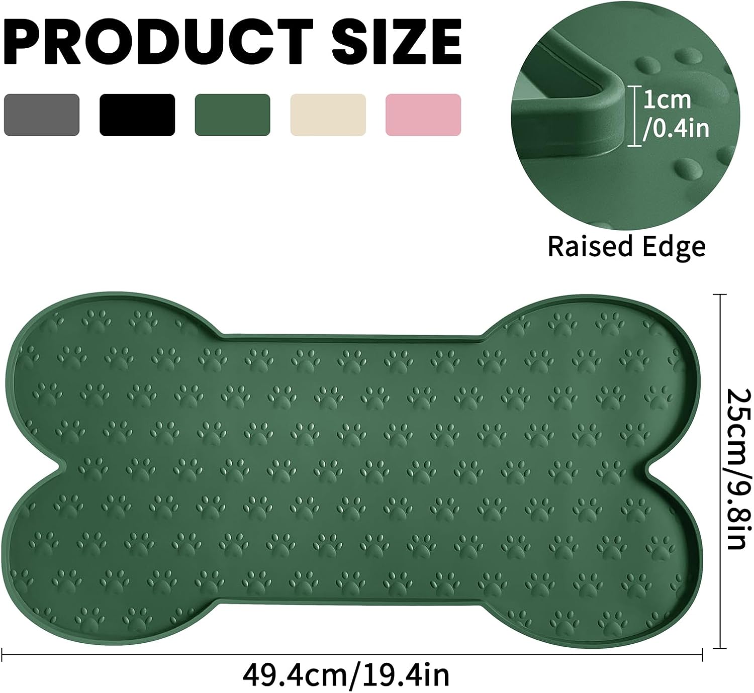 - Raised Edge - The high edge of this feeder mat keeps food and water within the tray and prevents spillage onto a clean floor. Keep your living space tidy and clean, say goodbye to messy floors, you just need to clean the dog bowl mat regularly.