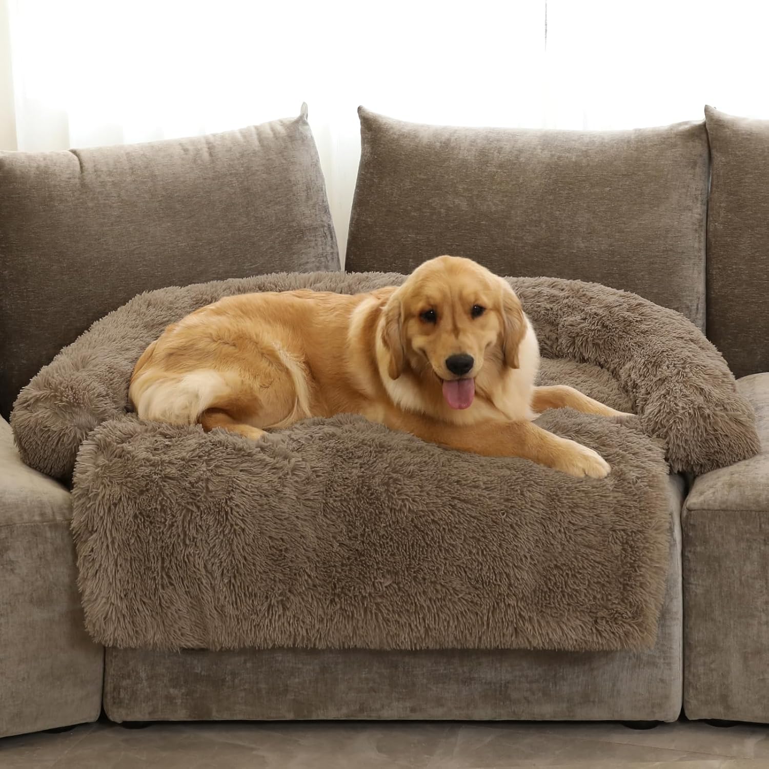 Calming Dog Bed Fluffy Plush Dog Mat for Furniture Protector with Removable Washable Cover for Large Medium Small Dogs and Cats (Extra Large (53x39.3x6), Camel)
