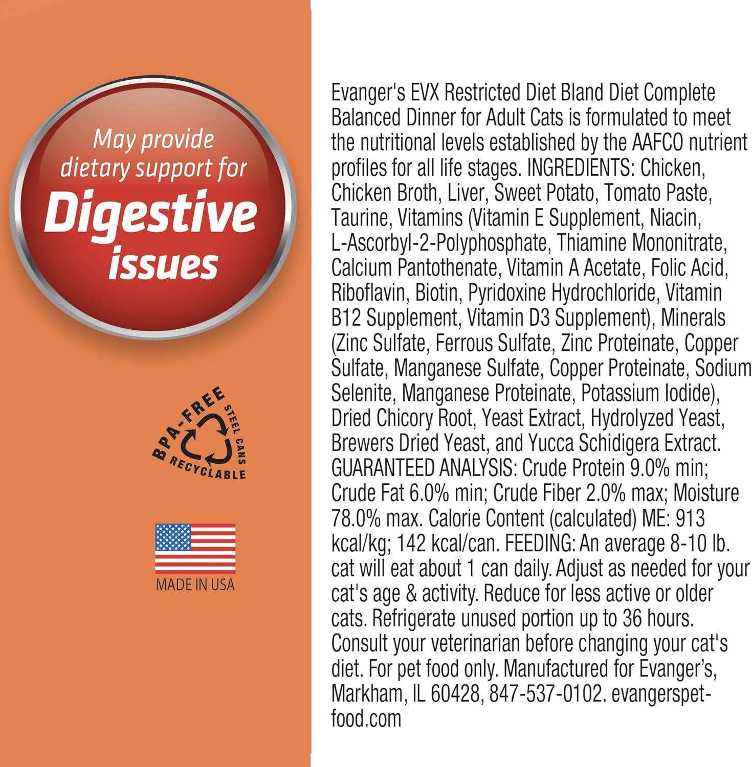 Evanger's EVX Restricted Diet Bland Diet Canned Cat Food – 24 Count, 5.5 oz Each – Chicken & Sweet Potato Recipe with Prebiotics & Postbiotics for Digestive, Microbiome & Gut Health Support